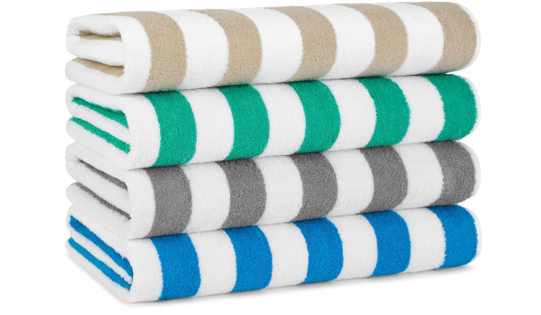 MULTIPURPOSE CABANA TOWEL: Originally developed as a hotel pool towel, Our striped cabana beach towel pack make terrific home bath towels, hotel towels, resort beach towels, Airbnb bed and breakfast bath towels, VRBO vacation rental, gym towels, and hotel spa towels.