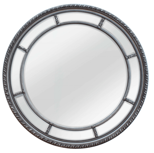 Elevate your interior design with the Augusta Silver Finish Circular Wall Mirror, an exquisite addition to any room. This large round frame wall mirror, crafted by SBC Décor, showcases a traditional wood frame that is meticulously hand-finished in a striking silver hue, complemented by ornate molding details that enhance its classic appeal.