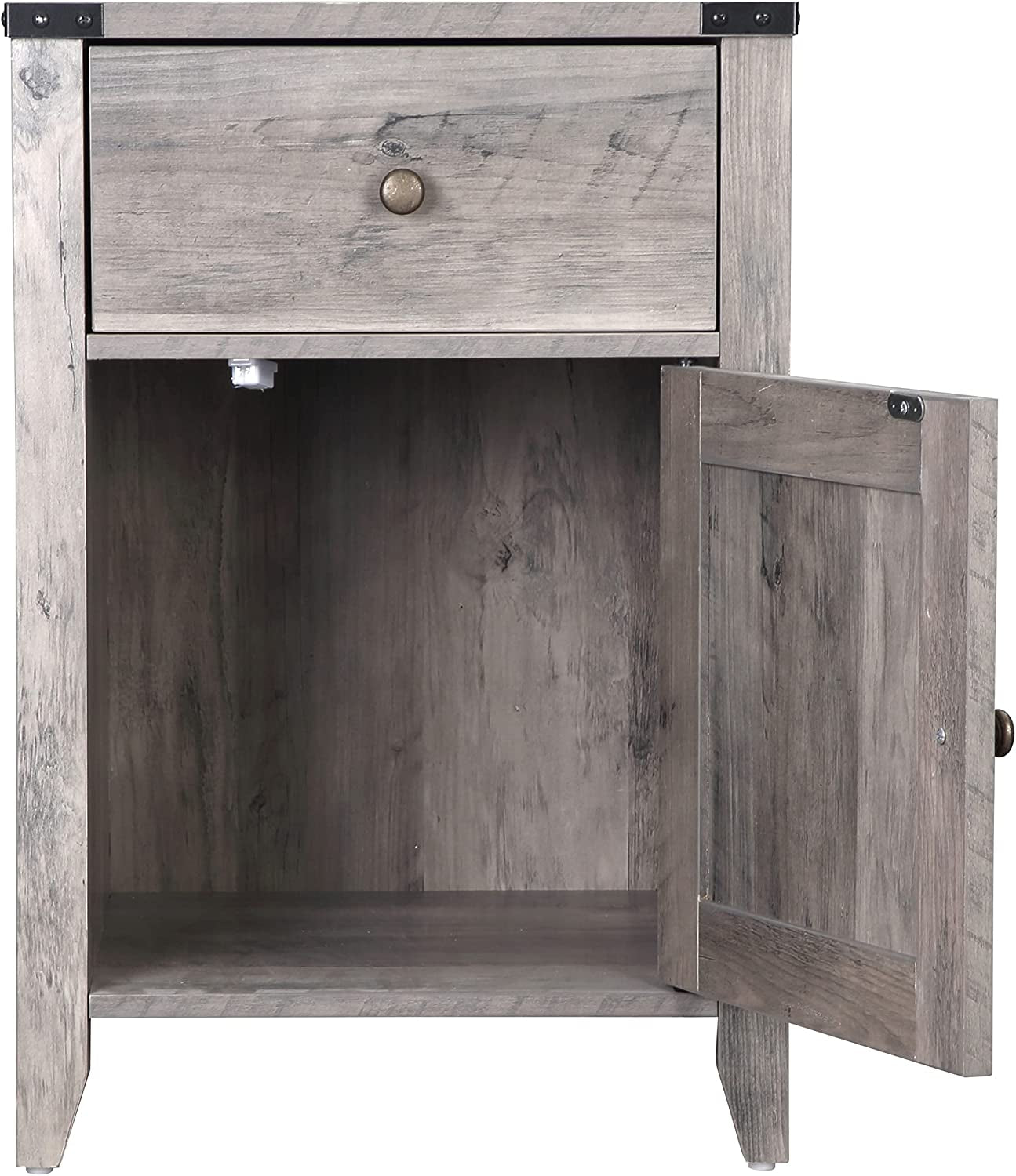 This barn door headboard comes in two models, with plug and regular. The frame is made of rubber wood and features barn-style doors, metal protective corners, and a cable management cutout on the back of the plugged model to help keep your space neat and tidy