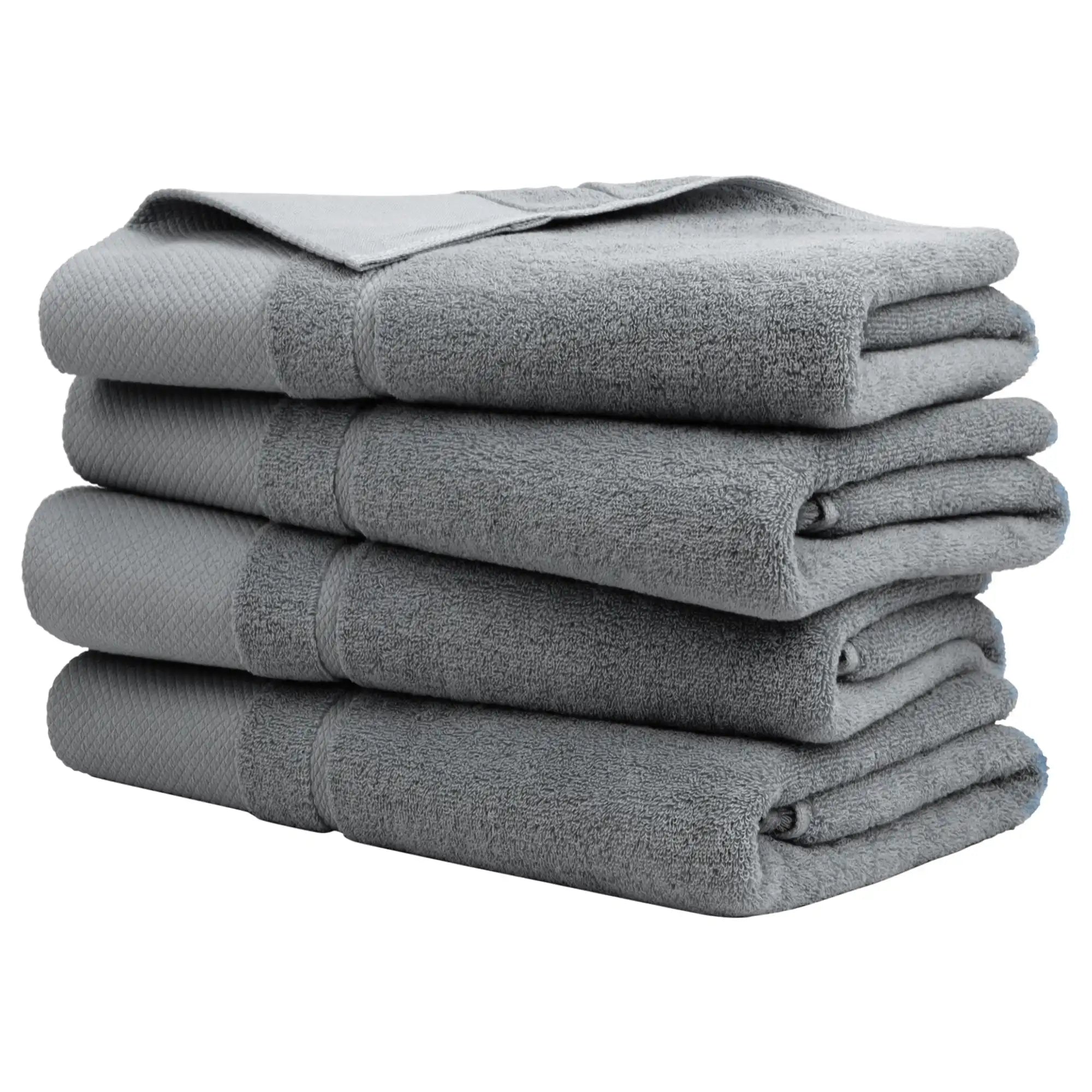 Bath Towel Set 27 x 54 Soft 100% Combed Cotton 600 GSM Luxury Towels 4 Gray