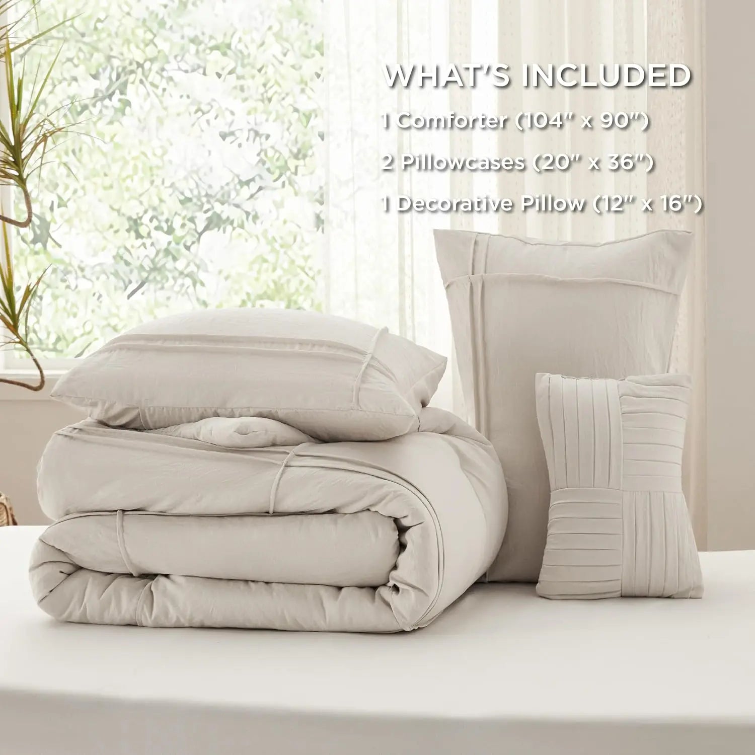 Included Components | 1 Comforter (104" x 90"), 2 Pillowcases (20" x 36"), 1 Decorative Pillow (12" x 16")1 Comforter (104" x 90"), 2 Pillowcases (20" x 36"), 1 Decorative Pillow (12" x 16") |