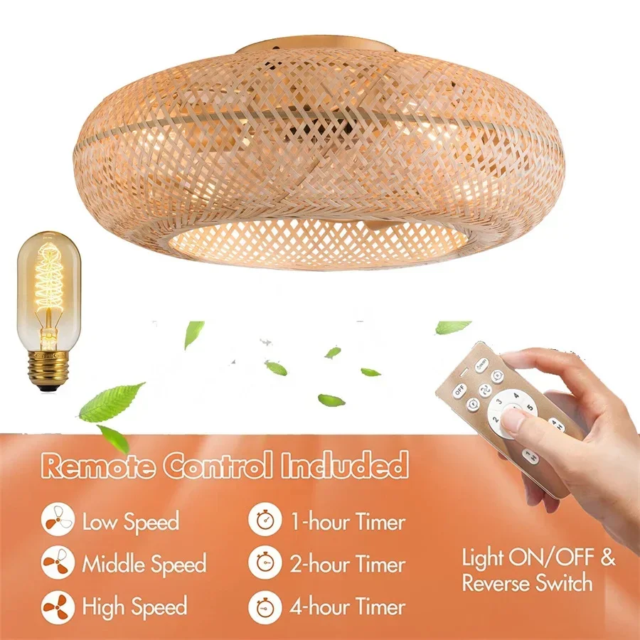 Build to Last: This ceiling fan consists of a metal iron chassis and woven rattan shade, together with hand-woven and spray-painted processes, making it anti-rust, corrosion-resistant, and sturdy.