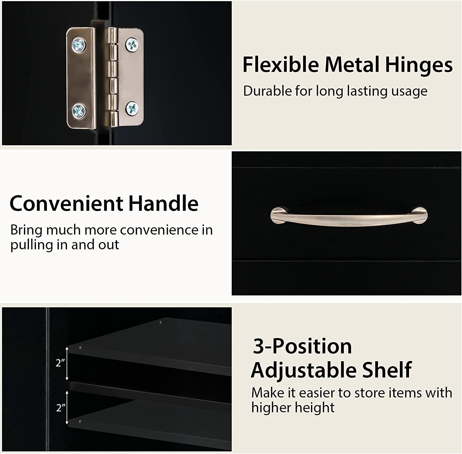 3-position adjustable shelf perfectly meets all your storage needs