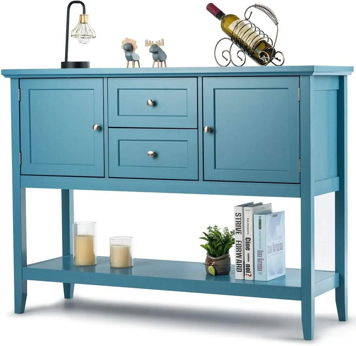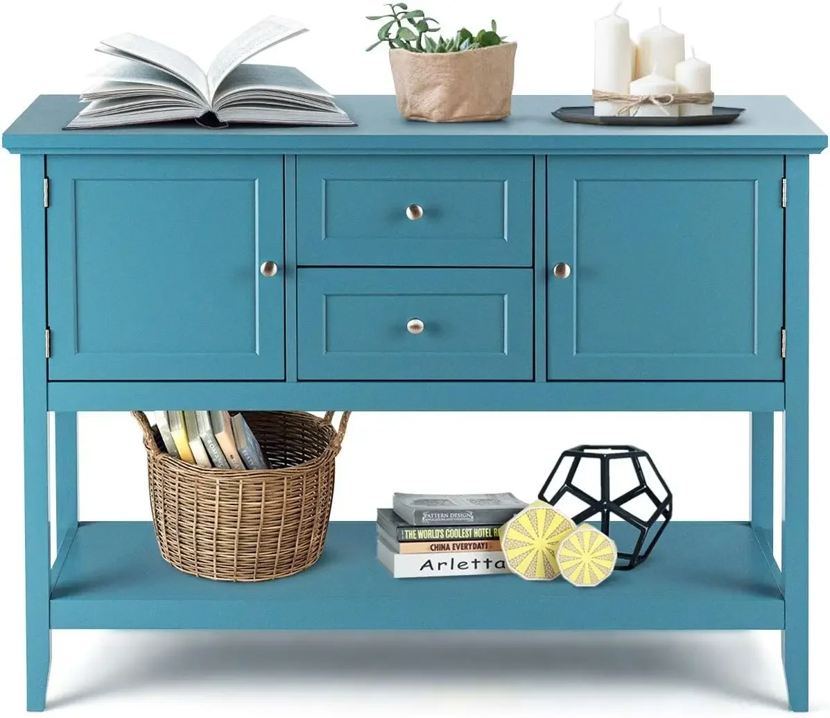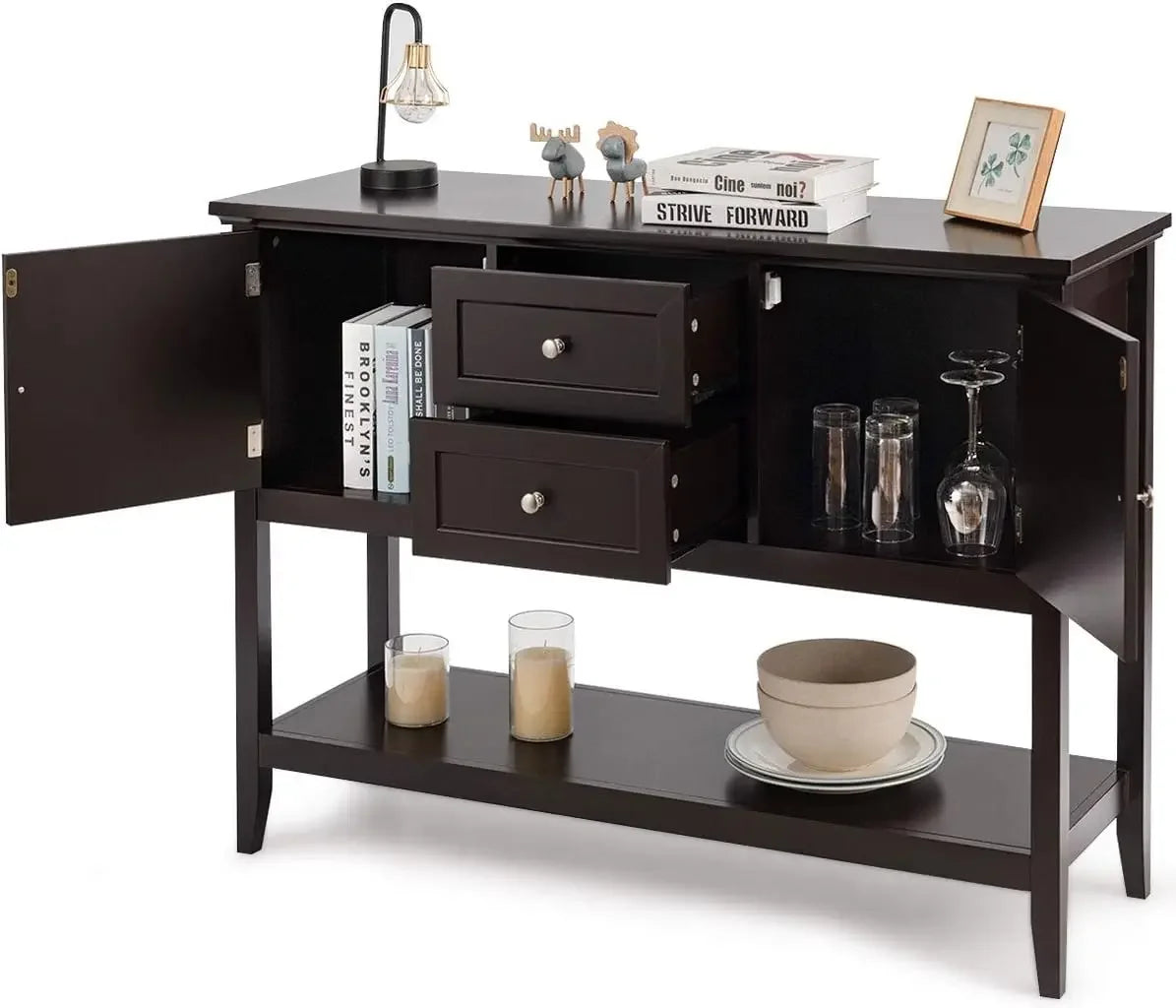 『Ample Storage Space』: This wooden sideboard is designed with 2 drawers and 2 cabinets, which provide you with ample storage space to classify and store different belongings. Besides, the top board and bottom shelf can display various items, such as fruit, tableware, plants, glassware, etc.