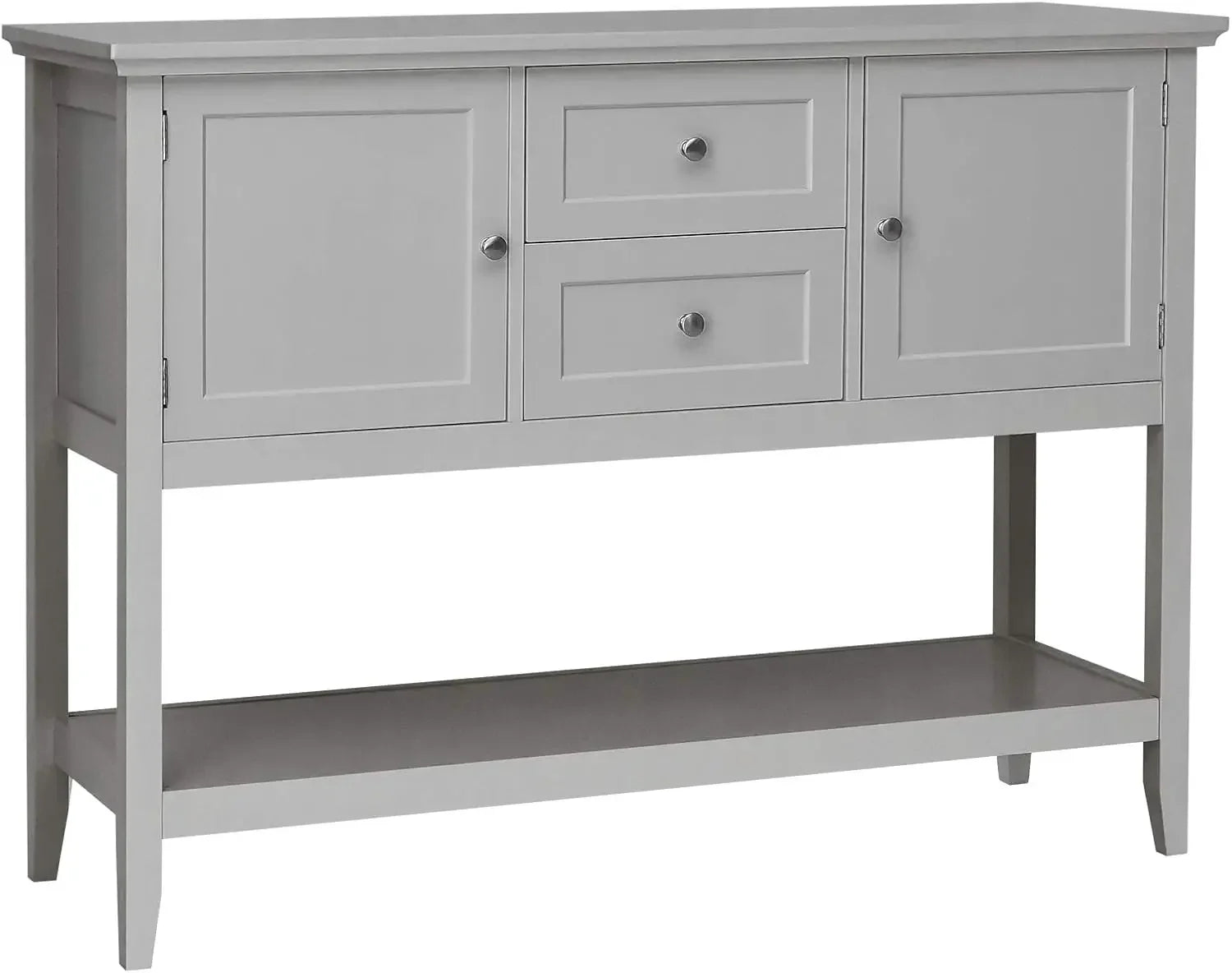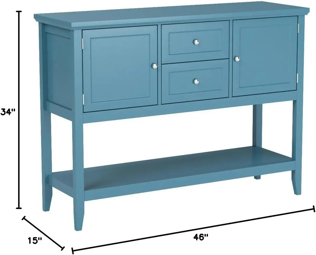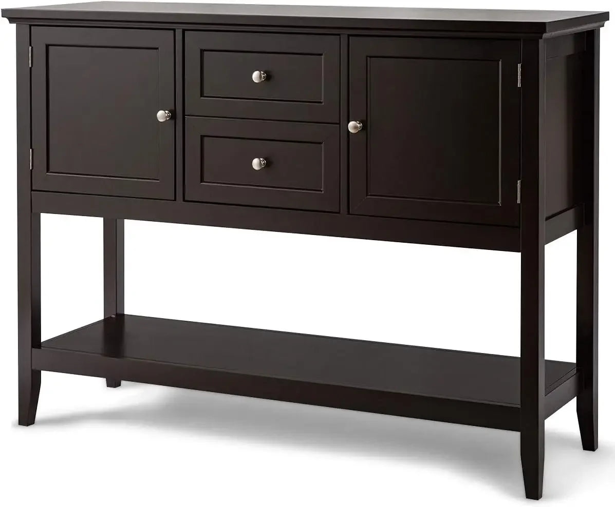 『Sturdy & Stable Construction』: This buffet table is mainly made of P2 grade MDF with environment-friendly NC painting, which is wear-resistant and durable for long-term use. And the solid pine wood legs are extremely sturdy and stable to support up to 220 lbs without wobbling.