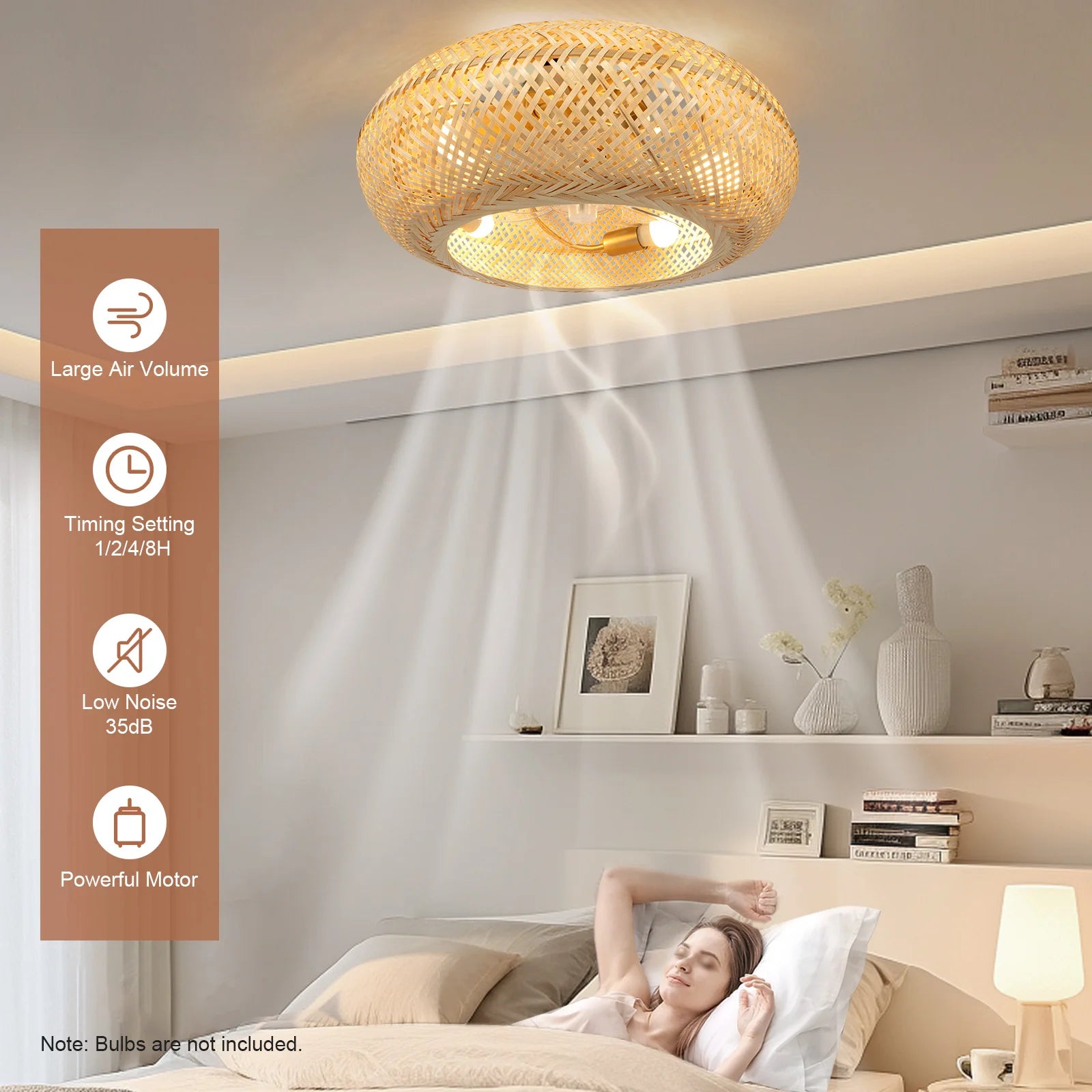 Build to Last: This ceiling fan consists of a metal iron chassis and woven rattan shade, together with hand-woven and spray-painted processes, making it anti-rust, corrosion-resistant, and sturdy.