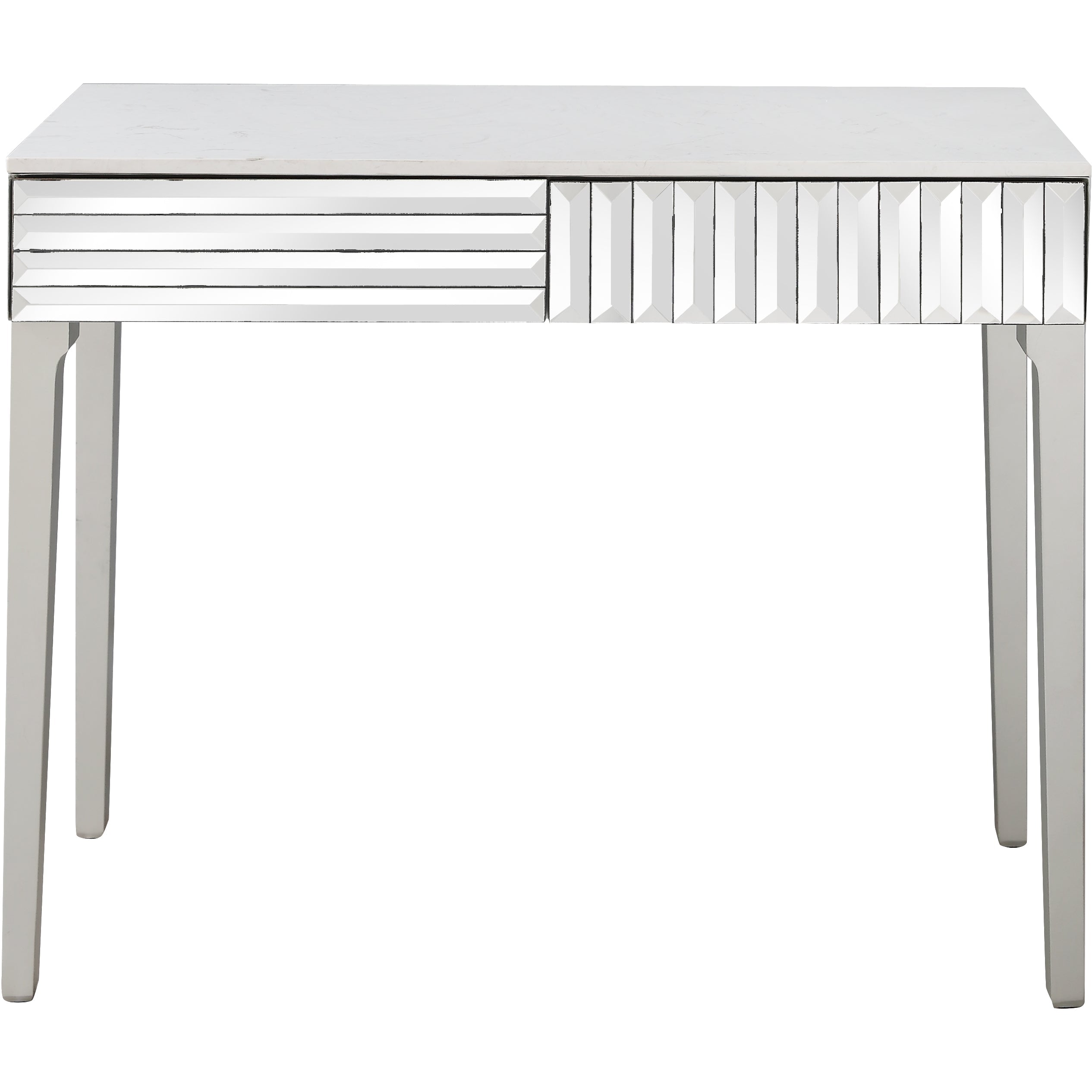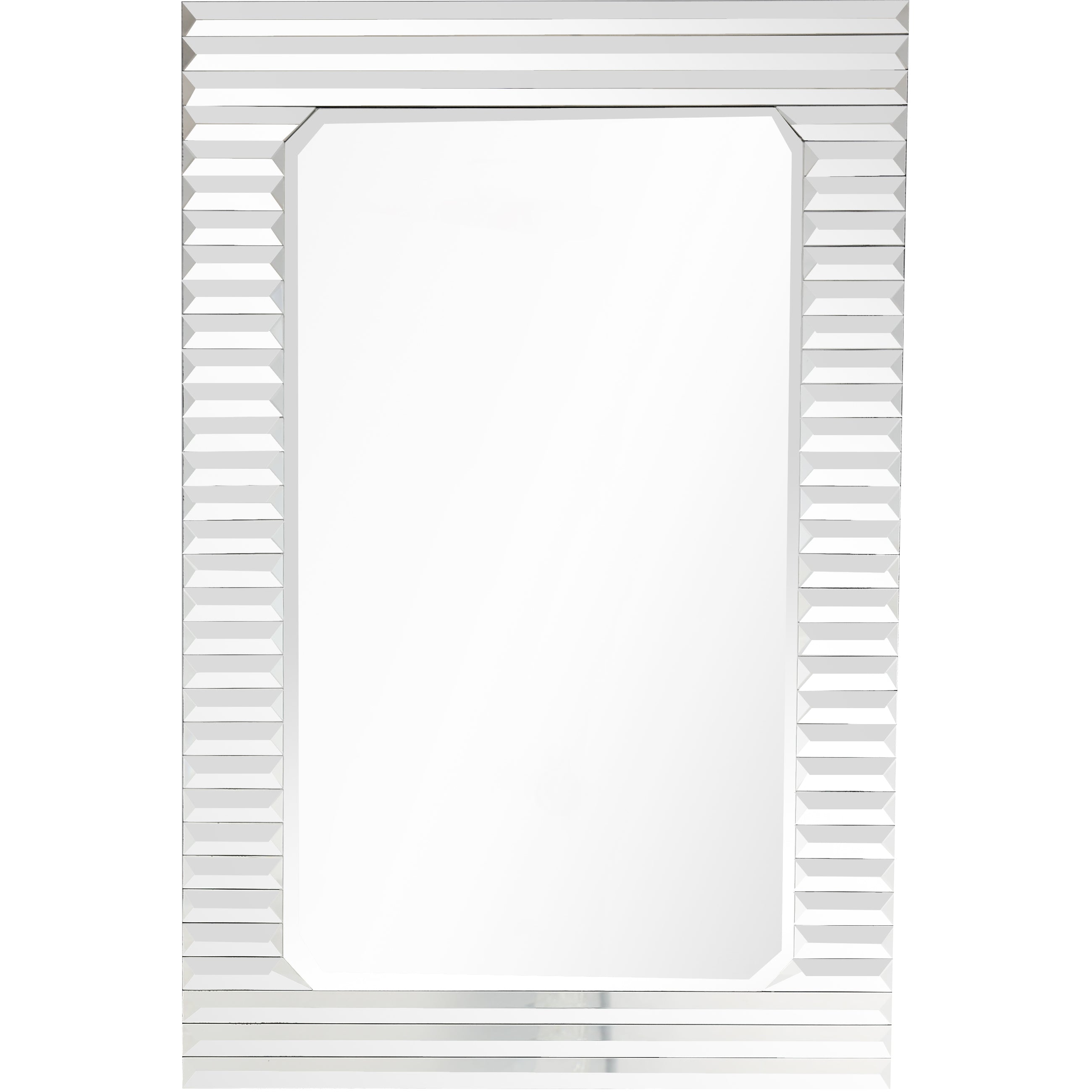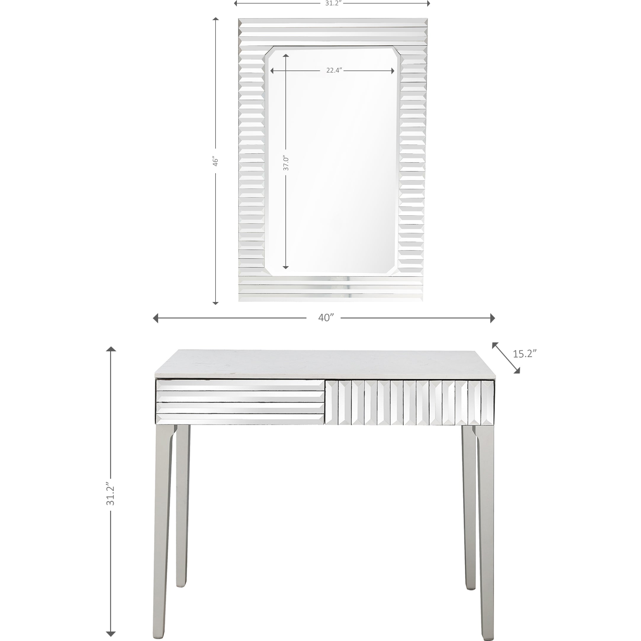 Bright and glamorous, Carla Mirror Console is a contemporary piece that brings a touch of sophistication to your living space. The console features an interesting geometric design on its drawers, creating elegant and alluring aesthetics. With its silver antique finish, this console is sure to grab your guests' attention. If you want to add some brightness to your living space, Carla Beveled Accent Mirror is perfect for you! The neatly cut geometric pieces on the borders effortlessly complement the emerald cut mirror and add a hint of glamour to any room it??ç?ûs placed in. Hang it above your rustic console table, displaying vibrant blooms to create a majestic look. Beveled 31.2 x 46 mirror has a high quality silver backing. Ready to hang either vertically or horizontally with pre-attached hanging mounts.
