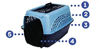 The Petmate Two-Door Dog and Cat Kennel is a reliable small pet carrier well-suited for travel with pets up to 15 pounds. This versatile pet carrier is ideal for both small dogs and cats, featuring top and front-loading doors for easy access and convenience. As an airline approved pet carrier, it fits most airline specifications. The dog car carrier design is excellent for car trips, with secure latches and a foldable handle that makes transport easy. Ventilation holes on all sides help your pet stay comfortable with fresh airflow and full visibility; minimizing travel anxiety whether you're using it as a dog travel crate or cat kennel. Cleaning is hassle-free with its sturdy plastic shell, and the interior stay-dry moat keeps your pet dry during travel. With dimensions of this small dog kennel provides adequate room for pets to move around comfortably. Its stable design supports your pet's natural denning instincts, providing them with a comforting, snug space to rest. The Petmate dog carriers for small dogs also serve as a great dog crate for car trips or visits to the vet, groomer, or park.