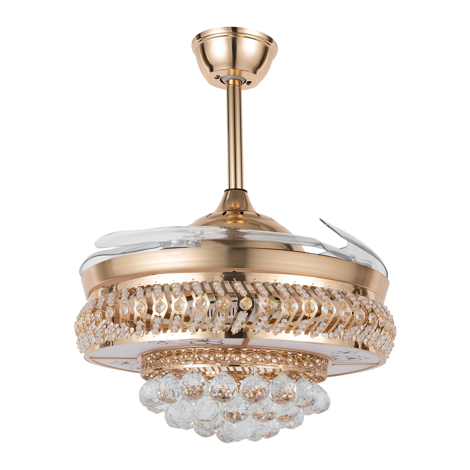 The shining lights on the ceiling of your home are also one of the expressions of your aesthetics and taste, and this crystal ceiling fan with lights is your good choice! The unique gold frame, K9 crystals, and ABS material fan blades look elegant and poised, making this product a highlight of your home. The bright and energy-efficient LED strip provides a large enough lighting area to meet your daily lighting needs. With the simple operation of the remote control, you can easily create a cool and bright space.