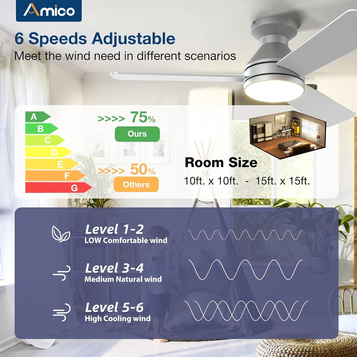 Transform your living space with the Dimmable Remote-Controlled Ceiling Fan with Lights. This stylish ceiling fan not only provides a refreshing breeze but also acts as an elegant decorative piece for any room. With its energy-efficient design, this 42-inch ceiling fan boasts an A energy efficiency rating, reducing electricity consumption by up to 80% compared to traditional fans.