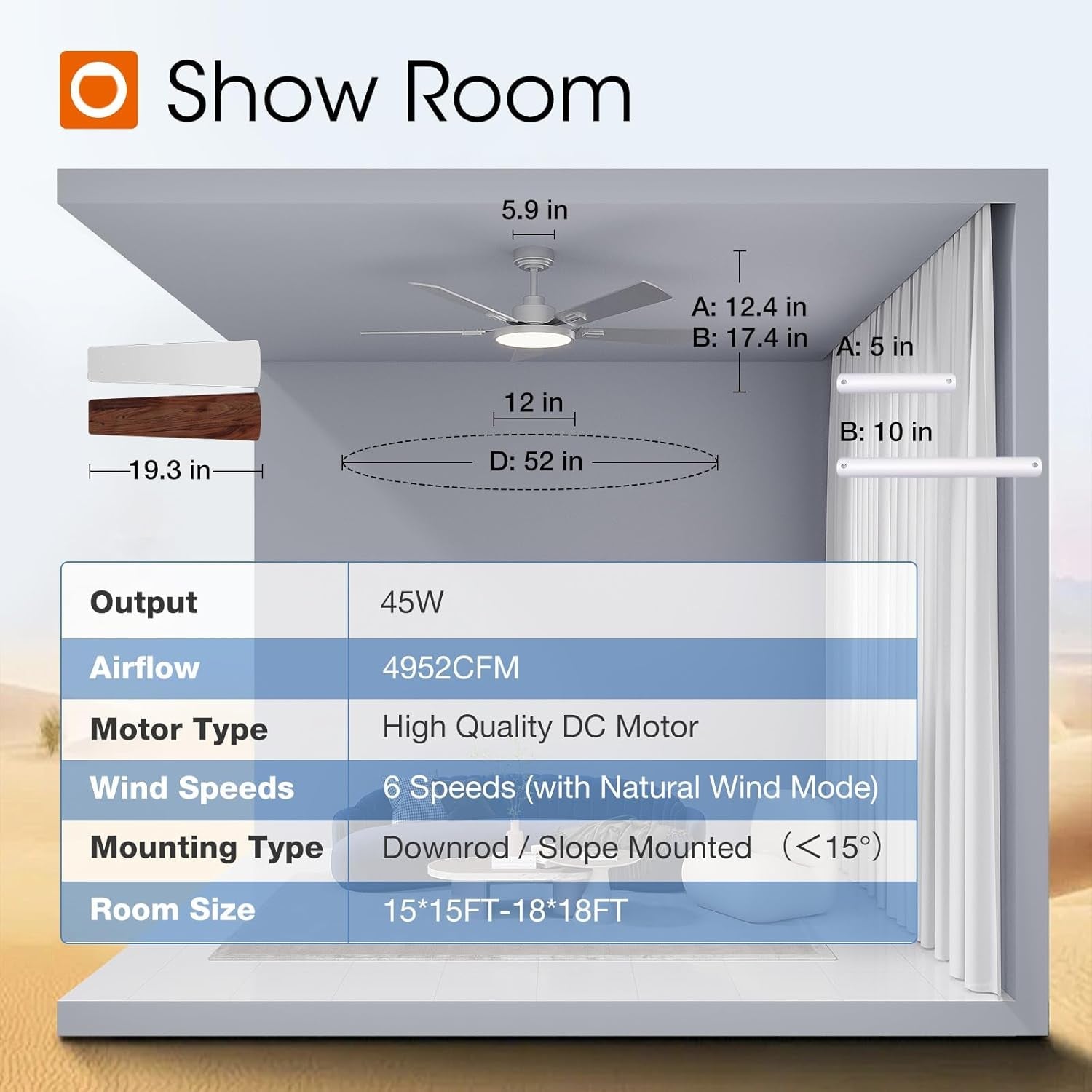Enhance your home’s comfort with the Stylish 52-Inch Ceiling Fan, a modern solution that combines efficiency with elegance. This ceiling fan not only provides refreshing airflow but also illuminates your space beautifully. With an energy-efficient DC motor, this fan minimizes electricity use by up to 80% compared to traditional fans, making it an eco-friendly choice for any room.