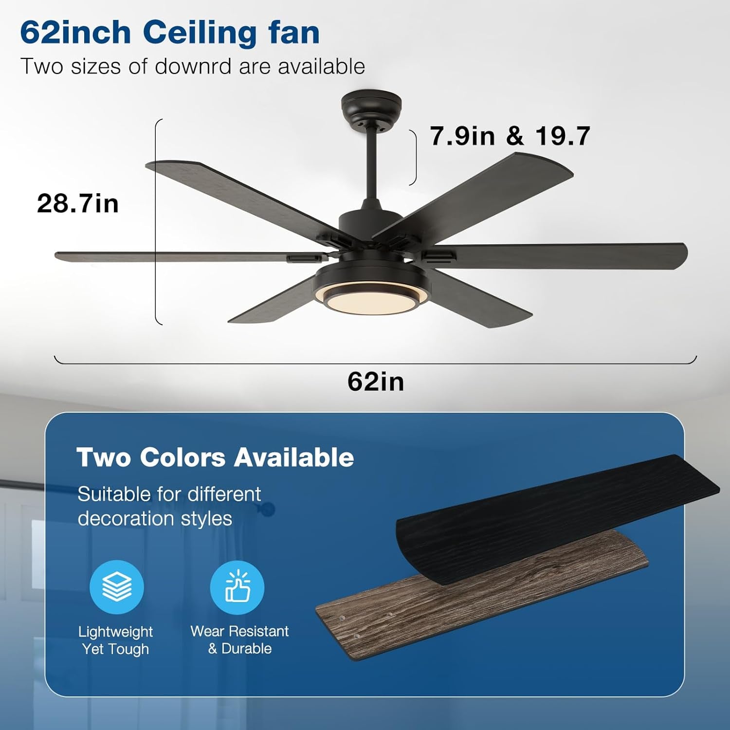 Enhance your indoor spaces with our Stylish 62-Inch Ceiling Fan, designed to bring elegance and functionality together. This modern ceiling fan not only provides a refreshing breeze but also features integrated lighting options, making it the perfect addition to any room.