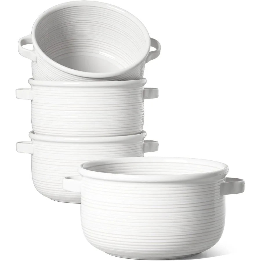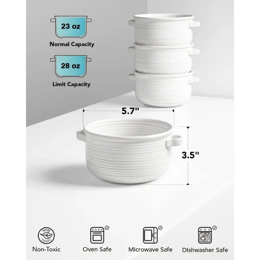 Ceramic French Onion Soup Bowls 28 Ounces for Soup, Cereal, Chilli, Beef Stew, Stackable Serving Bowls SetSet of 4, White