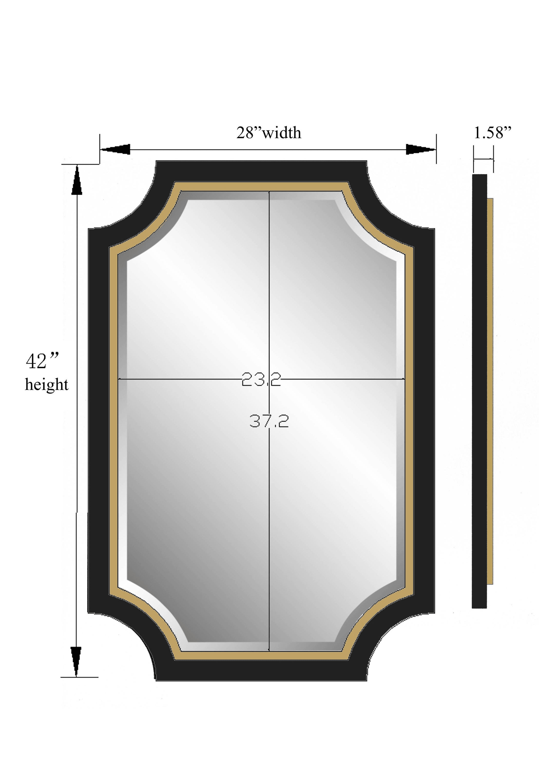 The Chanelle mirror can be positioned either horizontally or vertically, providing versatility to suit your decor needs. Crafted with a solid wood frame, it features stylized scalloped corners that create a striking contrast with the black painted exterior. The luxurious gold raised inner border adds an elegant touch, further elevating the mirror's overall design.