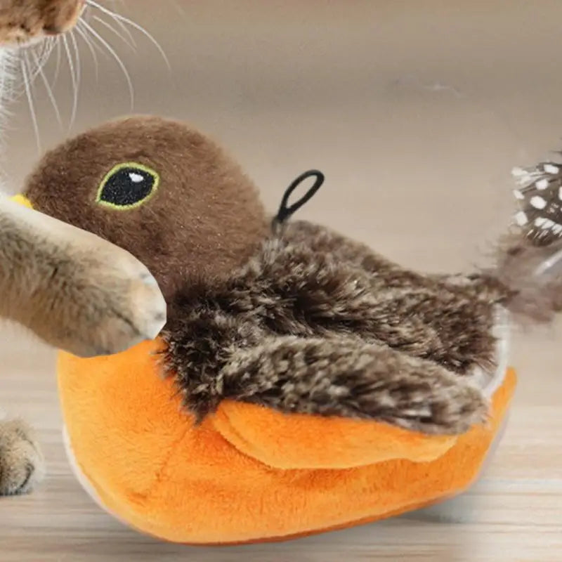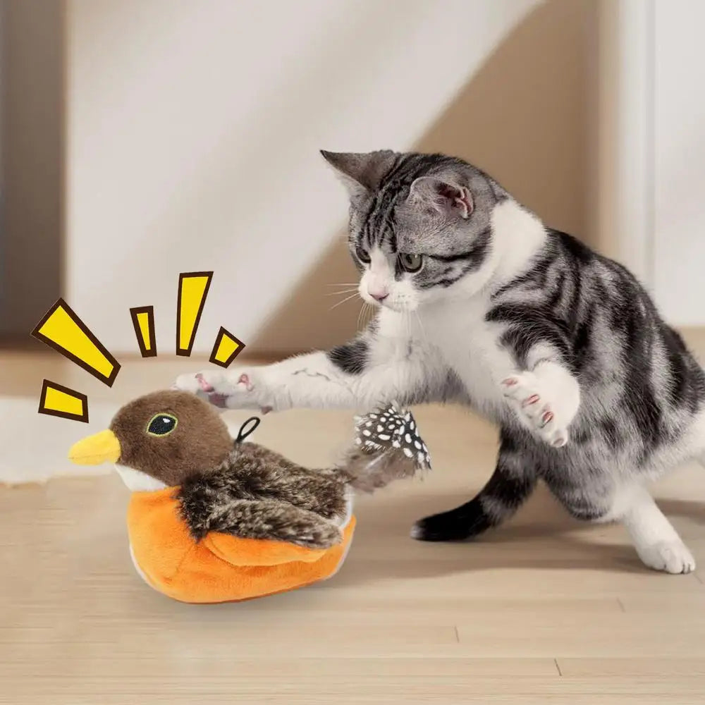 Chirping Bird Cat Toy Interactive Flapping Wings Plush Bird Toy Battery Operated Stimulate Animal Kitten Toy