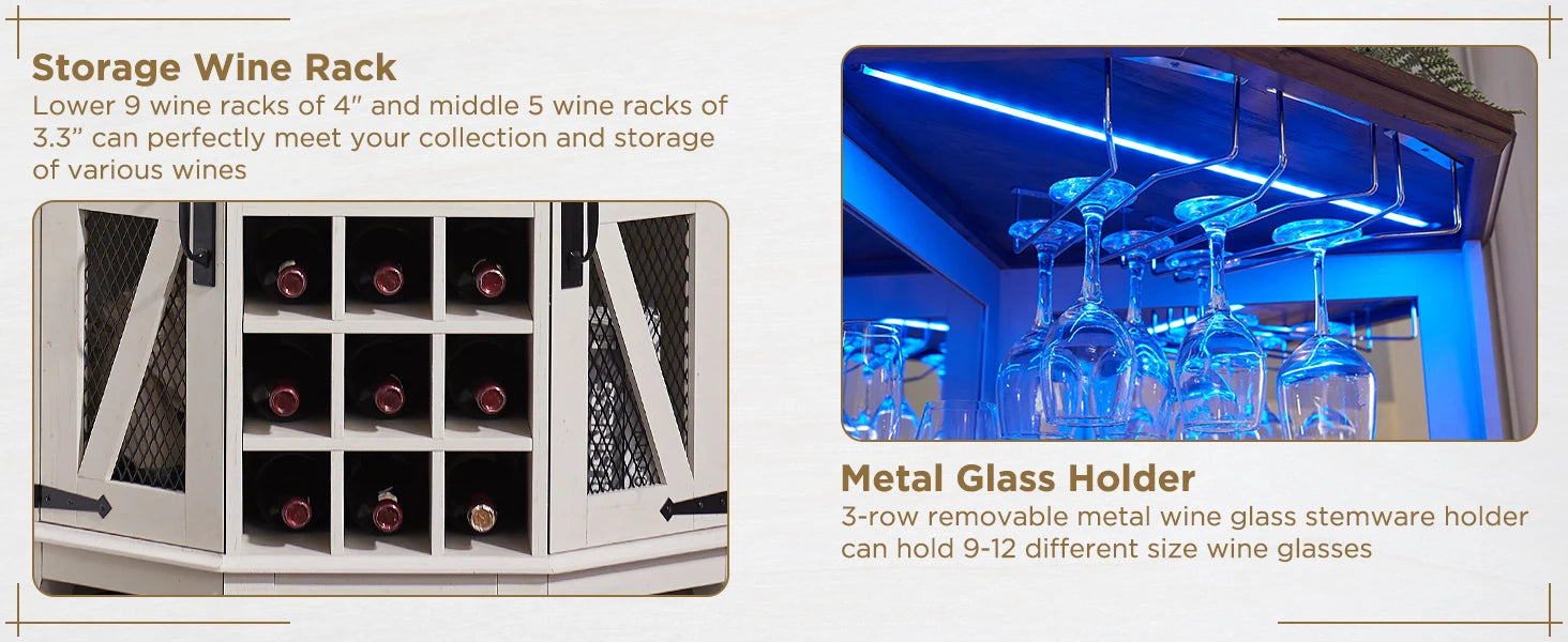 The 72" tall wine cabinet is equipped with 2 additional wall anchors as safety locks to prevent tipping injuries by accidents and protect your kids