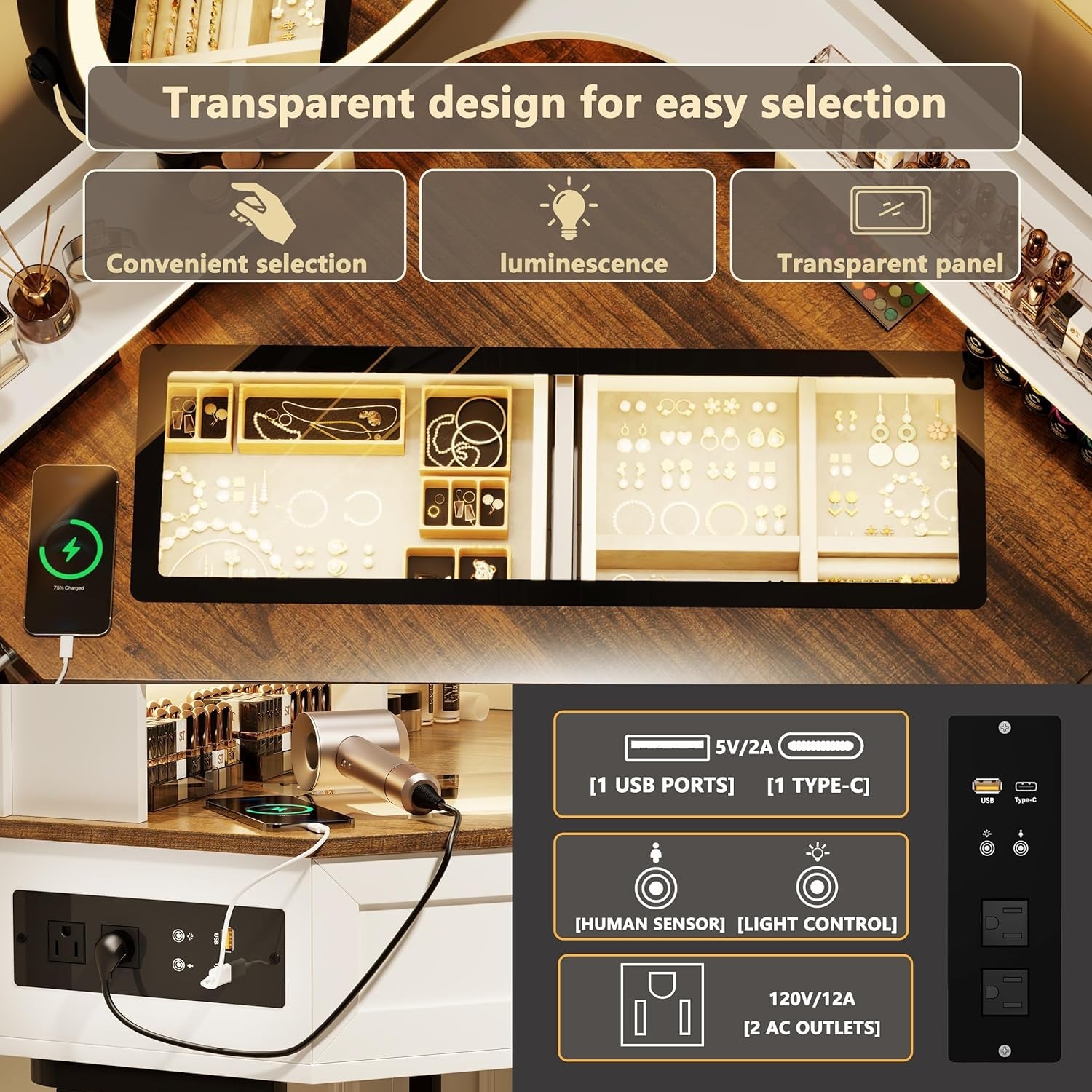 Experience the perfect blend of functionality and style with the FREDEES Corner Vanity with Mirror and Lights. Elevate your makeup routine and enjoy a luxurious touch in your daily life.