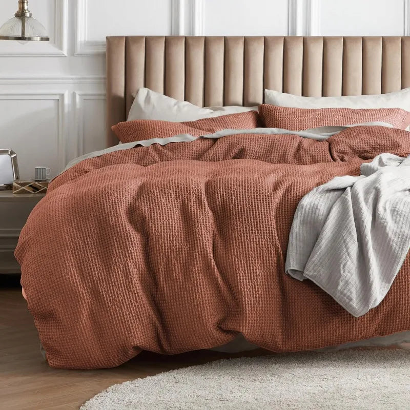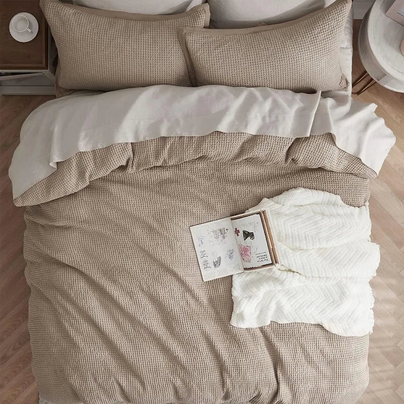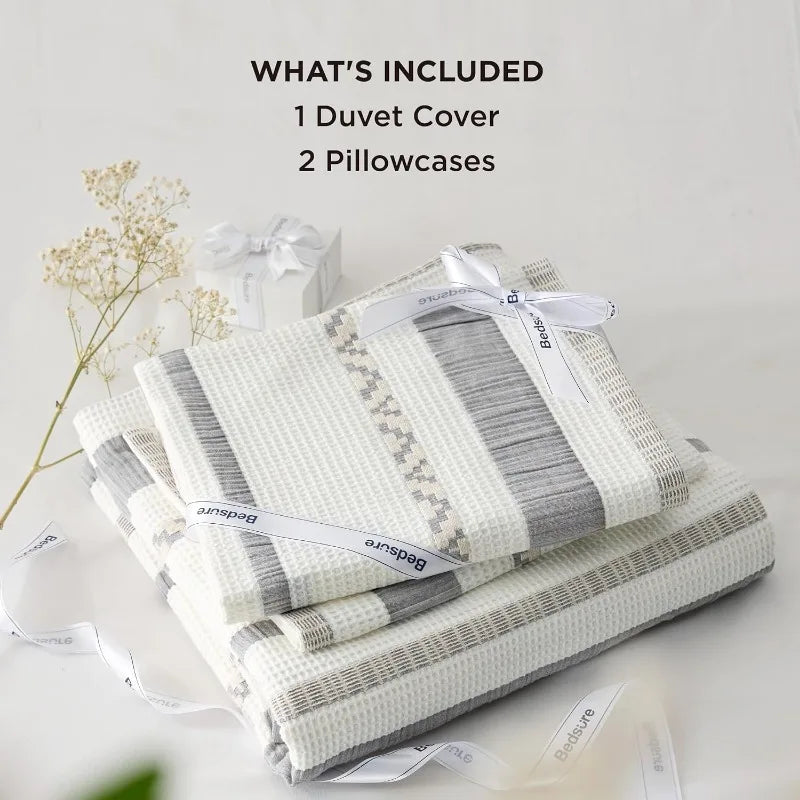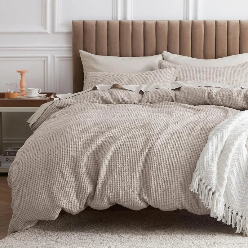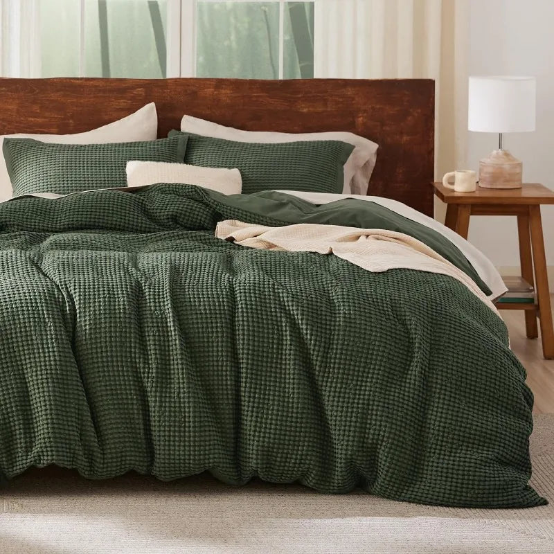 • Enhanced Durability: The cotton fabric's dimensional waffle weave texture offers increased wrinkle-resistance. This duvet cover set is machine-washable and gets even softer (without shrinking or wrinkling) after each wash.