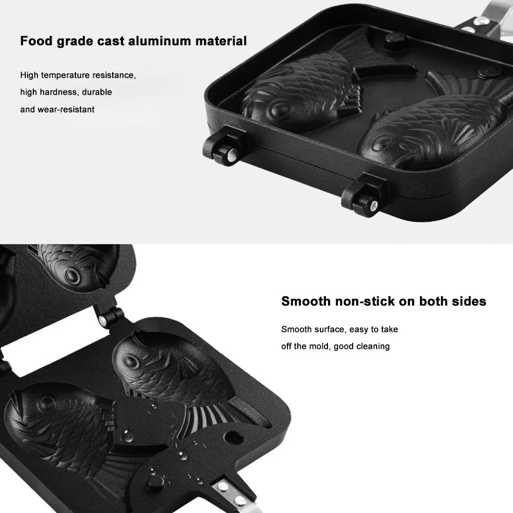 ![]() Double Fish Shaped Taiyaki Dessert Waffle Cake Maker Pan Non Stick Fry Pan Waffle Molds Aluminum Alloy Taiyaki Double Baking Pan