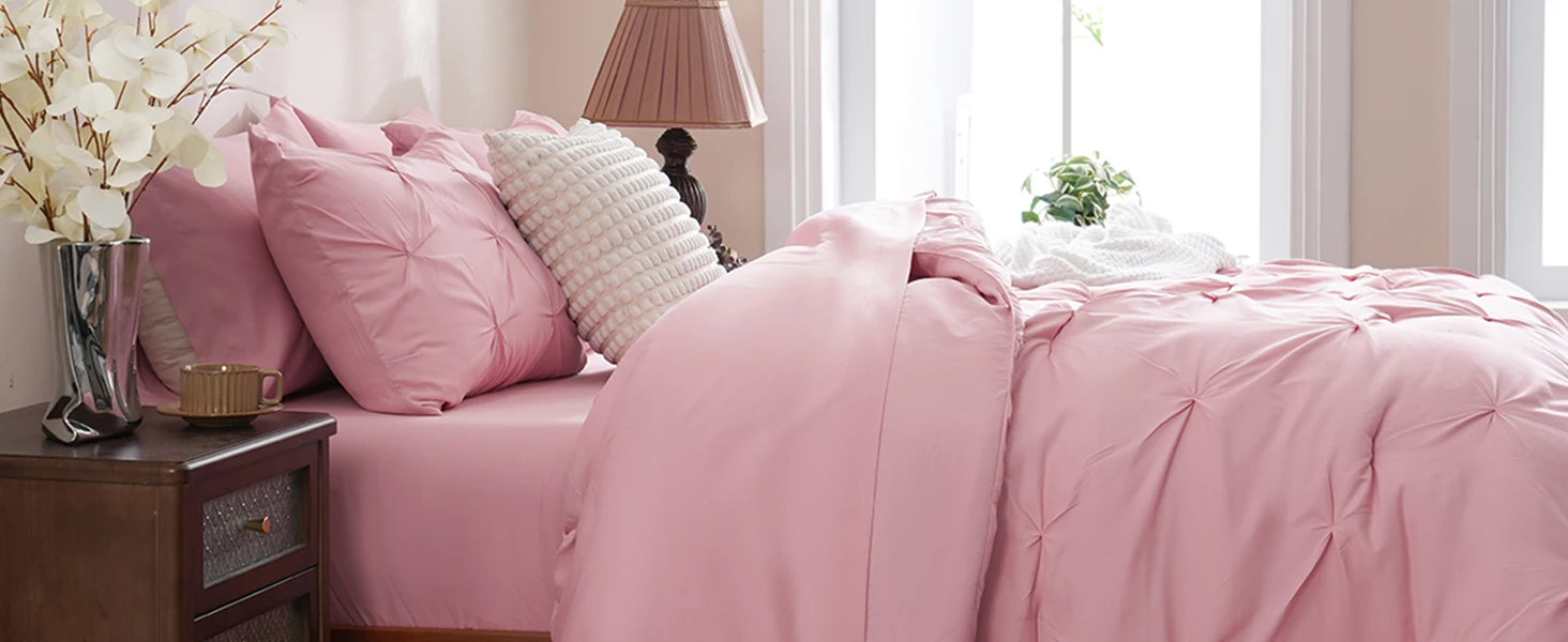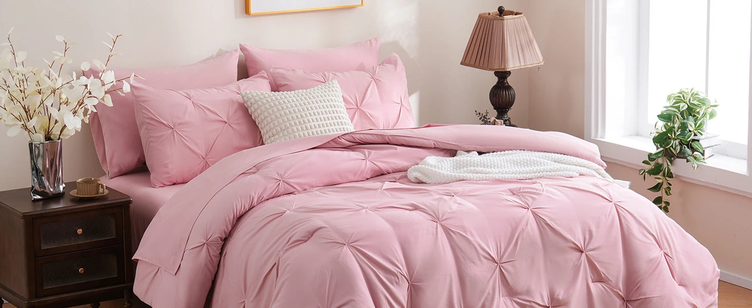 Our 7 Piece Pinch Pleat Bed Set provides everything you need for a comfortable and cozy night's sleep, making it the perfect gift for girls and women!