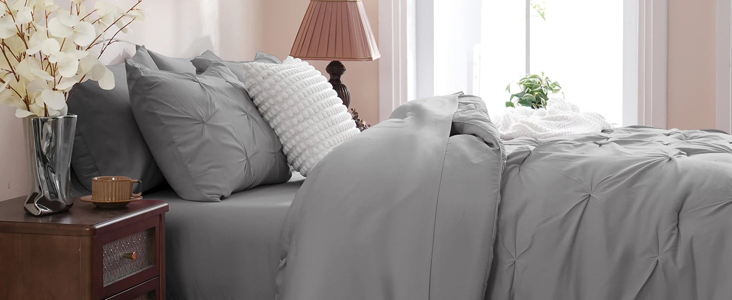 Our bedding comforter sets features a delicate hand-pinched pleat patterns create an elegant design, make your bedroom more beautiful.