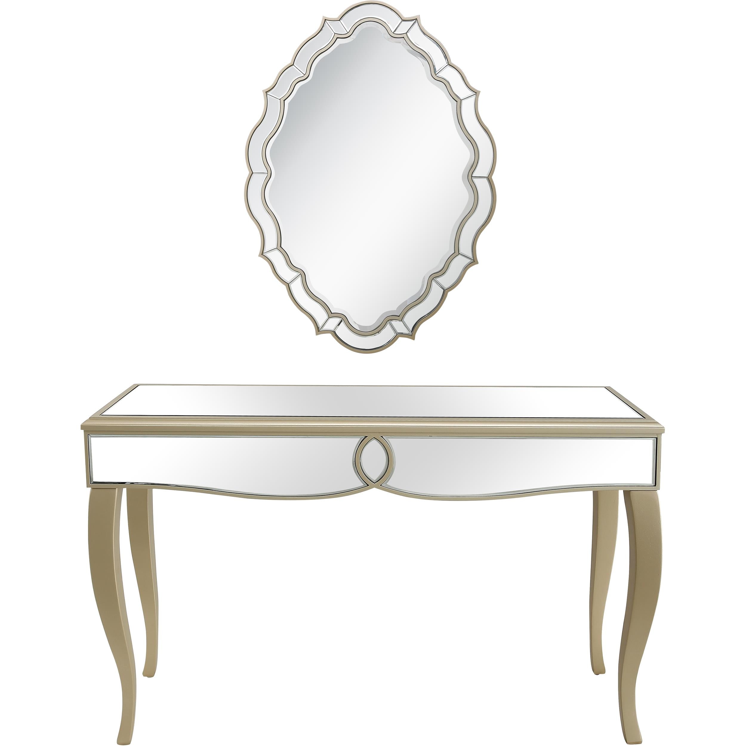 The Eleanor Wall Mirror is ideally suited for those who appreciate a nod to the past. This oval-shaped mirror with scalloped edges is 30 inches in width and 42 inches in length. Its shapely exterior can carry a bold design presence on its own but packs a heftier punch when paired with our matching console table. Whether you purchase this piece alone or both complementary pieces, you simply can't go wrong. The Eleanor is refined elegance at its best. This understated design features a fully mirrored surface, matching mirrored apron and slender curved legs. With ample space beneath and curves galore, the posh appeal of the Eleanor is impossible to ignore.