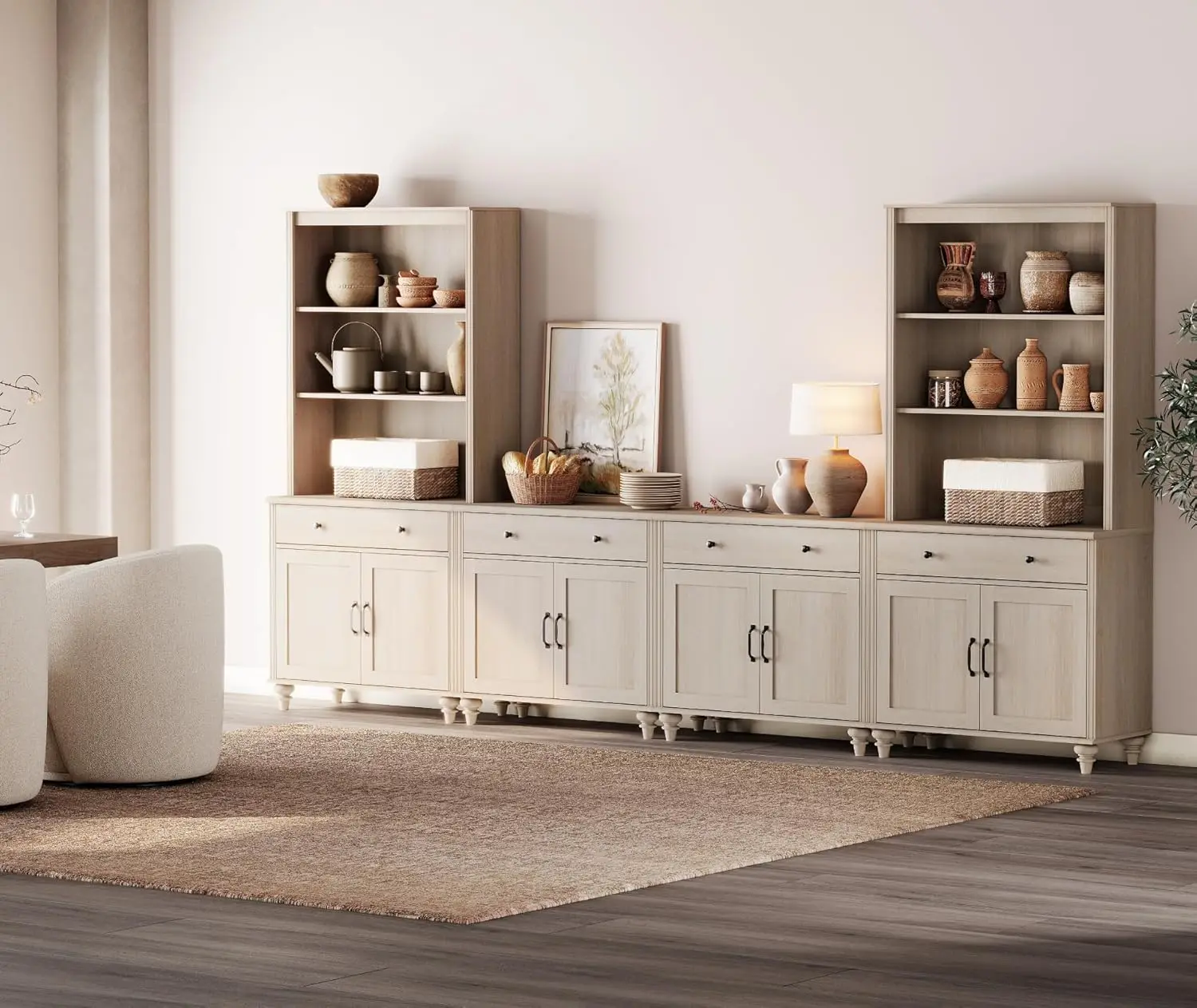 Size: 15.7"D x 135.4"W x 72.1"H,14 Shelves & 4 Drawers