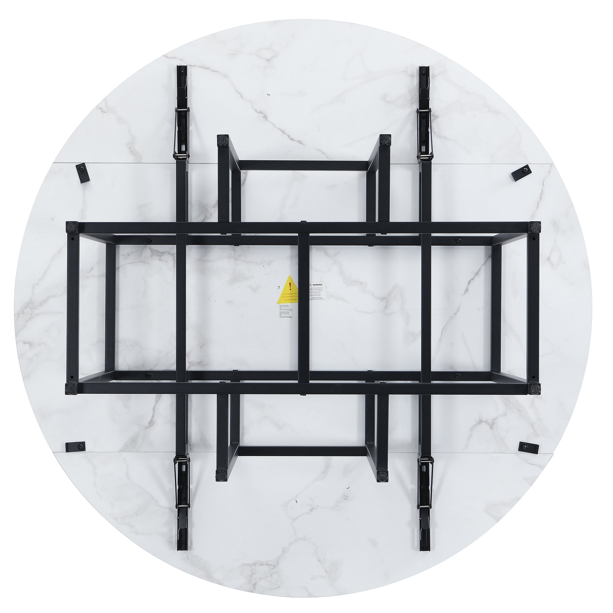 Color | Table:Faux Marble White Chair:Black Frame +Beige Cushion |