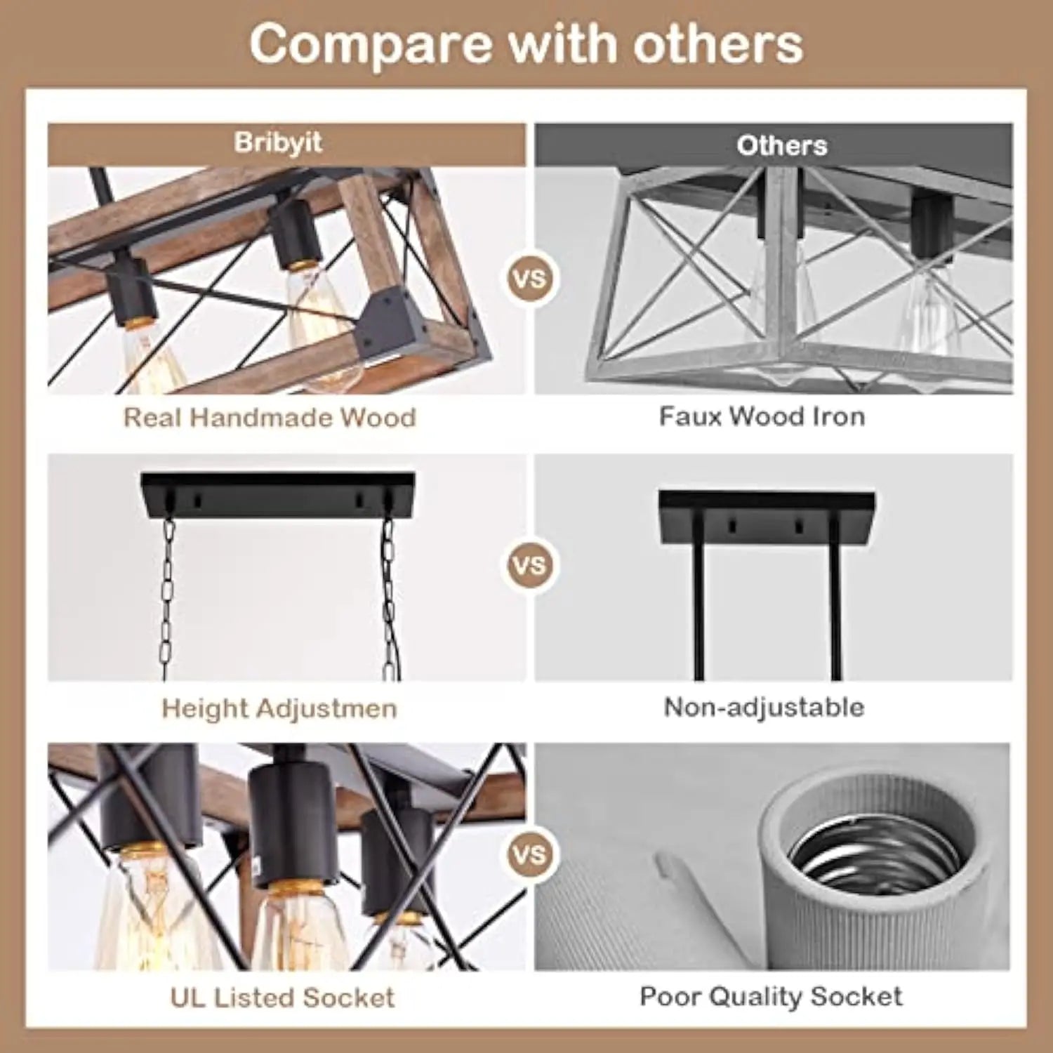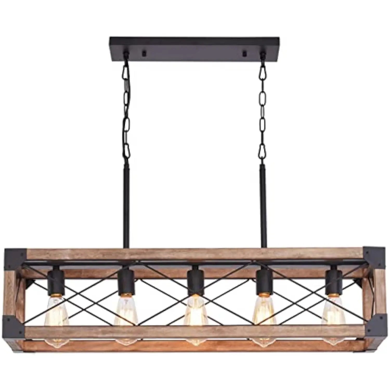 Farmhouse Kitchen Island Lighting, 5-Light Dining Room Light Fixture, Farmhouse Linear Chandelier with Solid Wood for Dining Ro