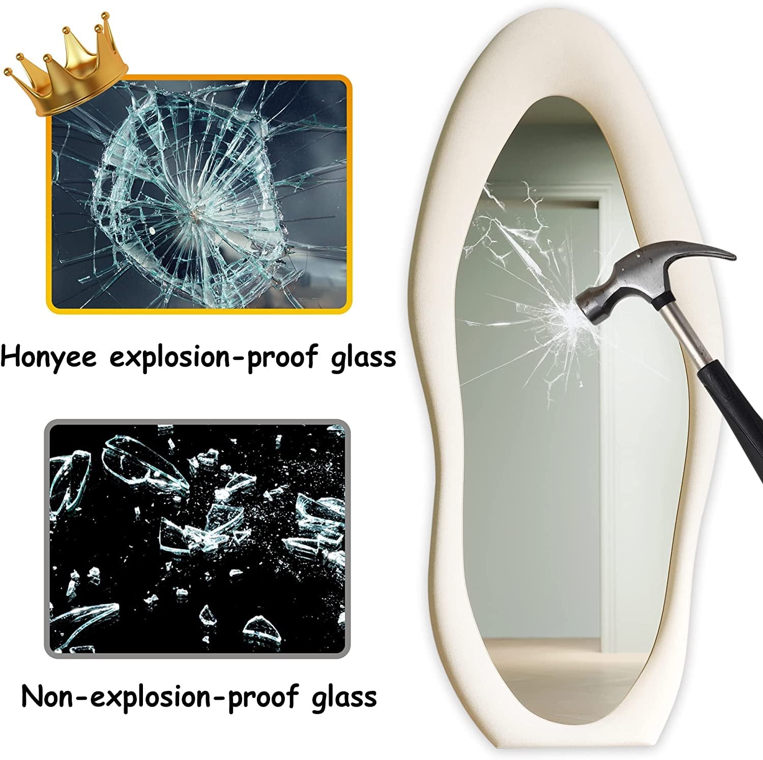 • UNIQUE DESIGN: The shape of the full length mirror uses an irregular design. The footprint shape makes the entire mirror looks unique. It is very conspicuous in any space and makes your room look tasteful.