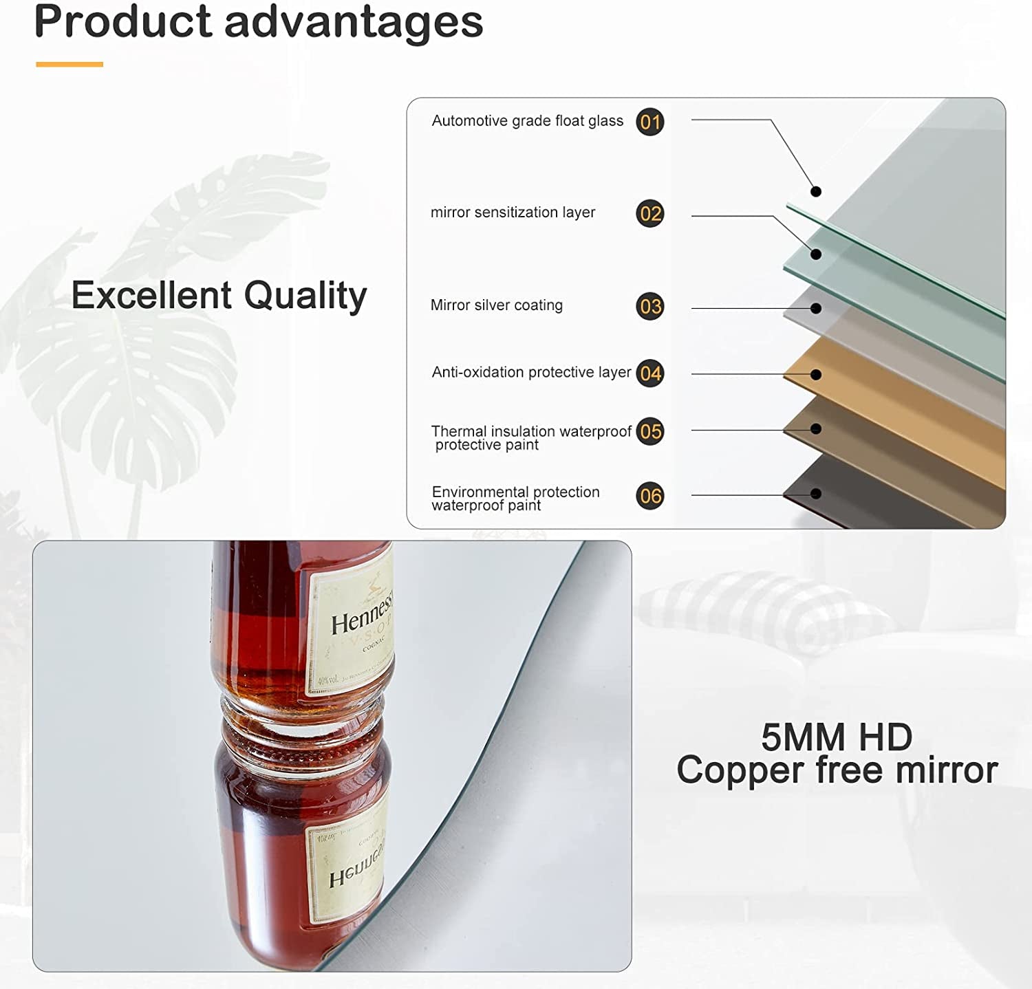 • DURABLE QUALITY: Our mirror made of high quality floating annealed glass and premium silver backed glass panel, which can prevent warping and distortion, give you a real HD imaging. Premium silver backing improves durability in high-humidity environments.
