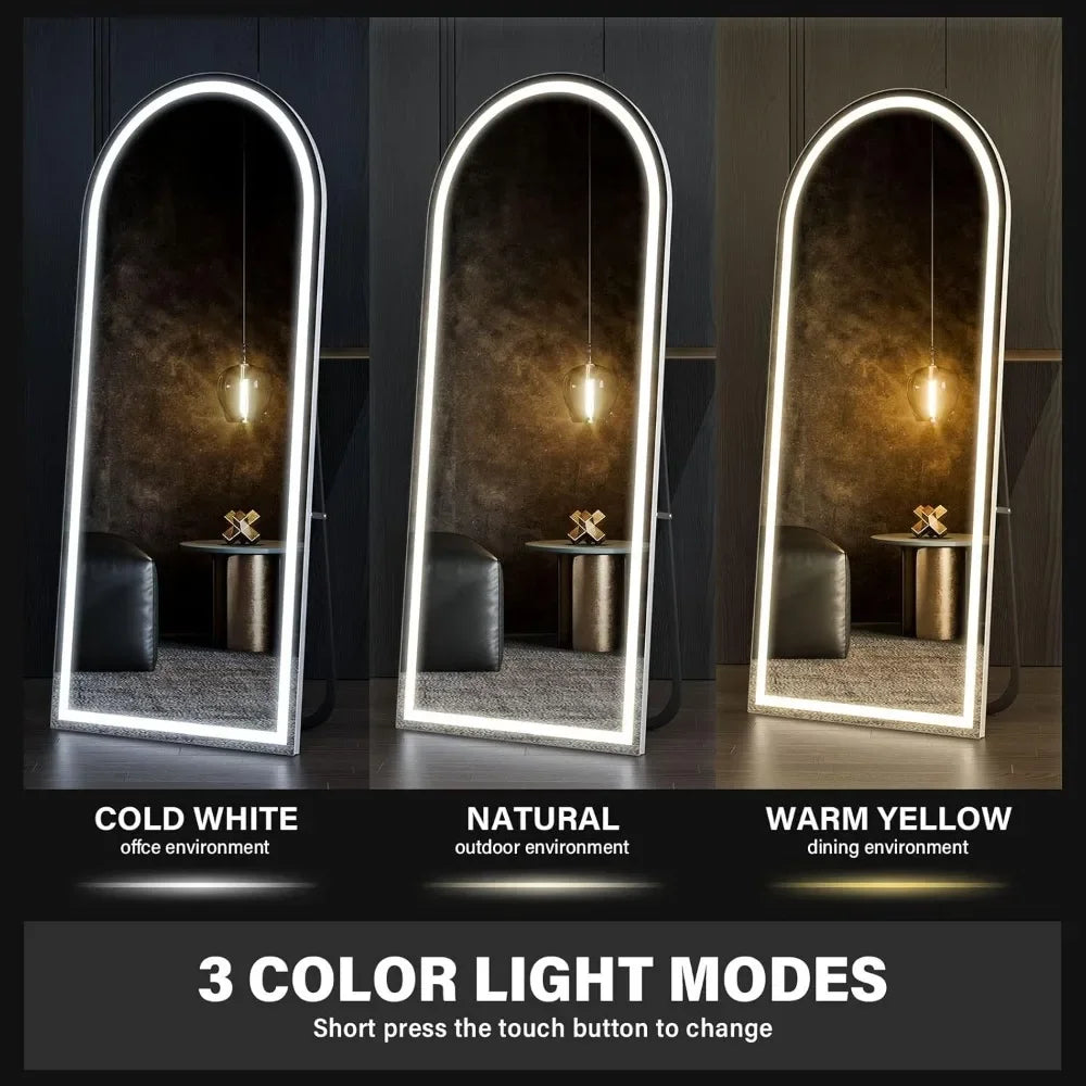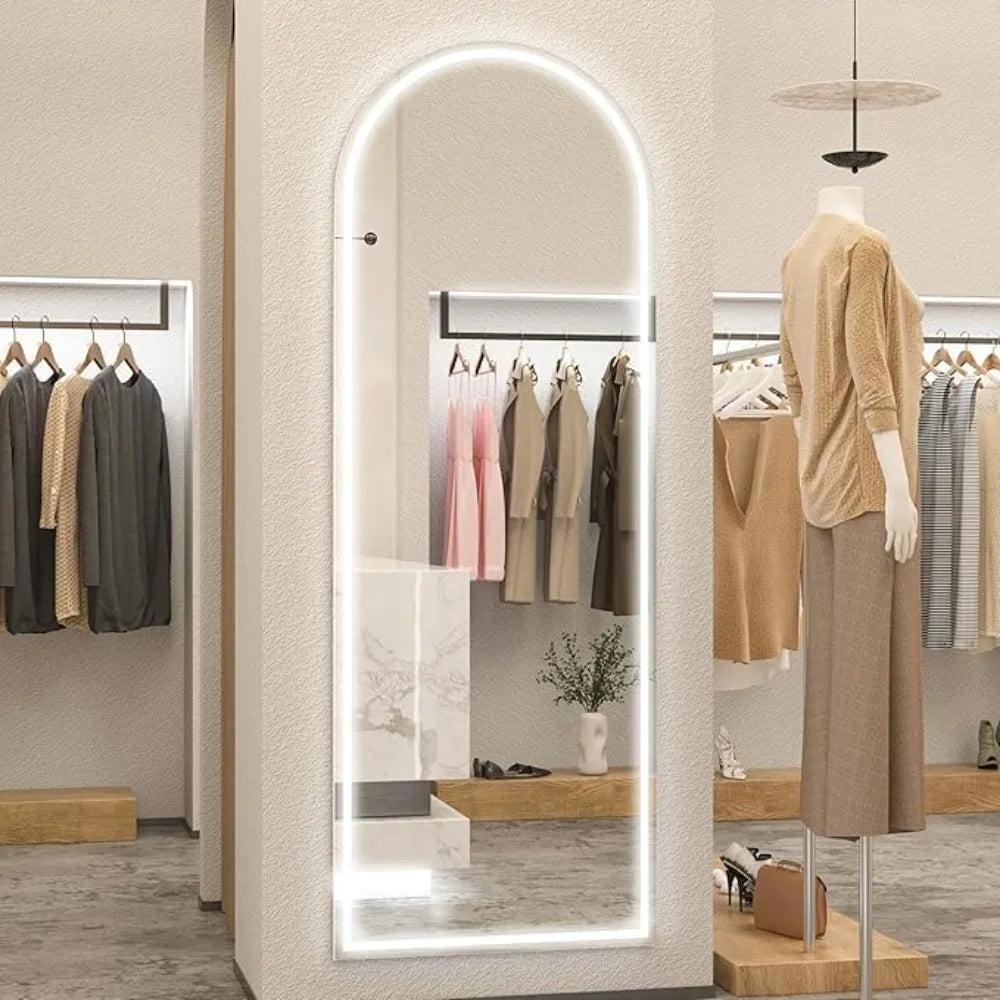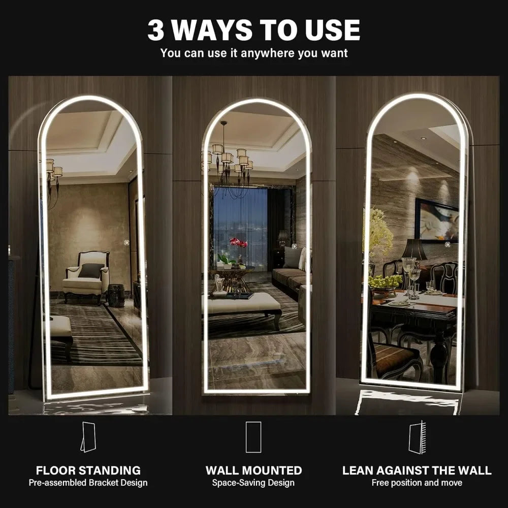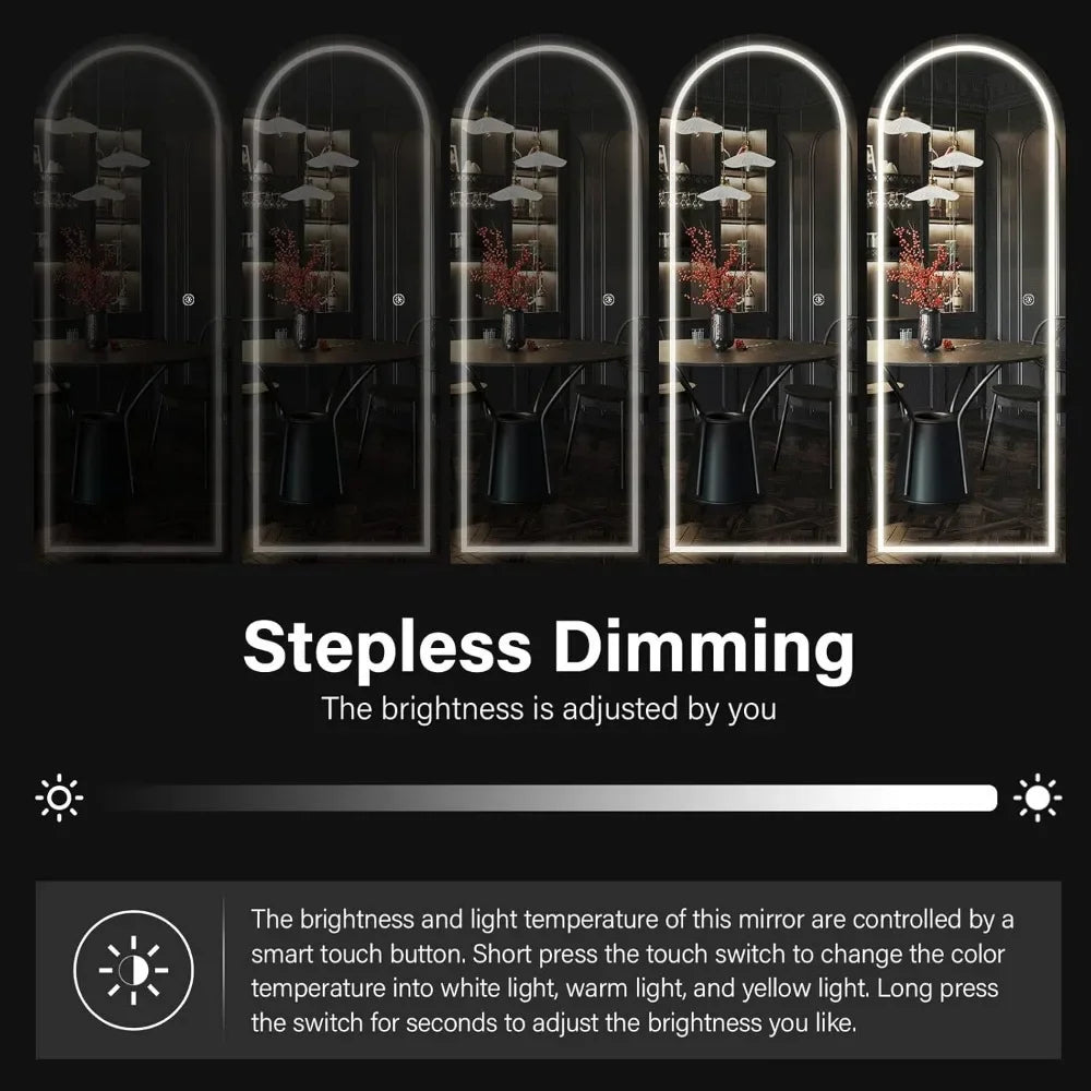 【OVERALL SIZE】The 63"x20" Arched lighted mirror is large enough to provide you with a full-body view from any angle. Standing in front of the mirror before going outside, you will see the best of yourself. It can also bring more brightness and broaden the horizons of your room. Ideal for your bedroom, bathroom, living room, locker room, office, dormitory, etc.
