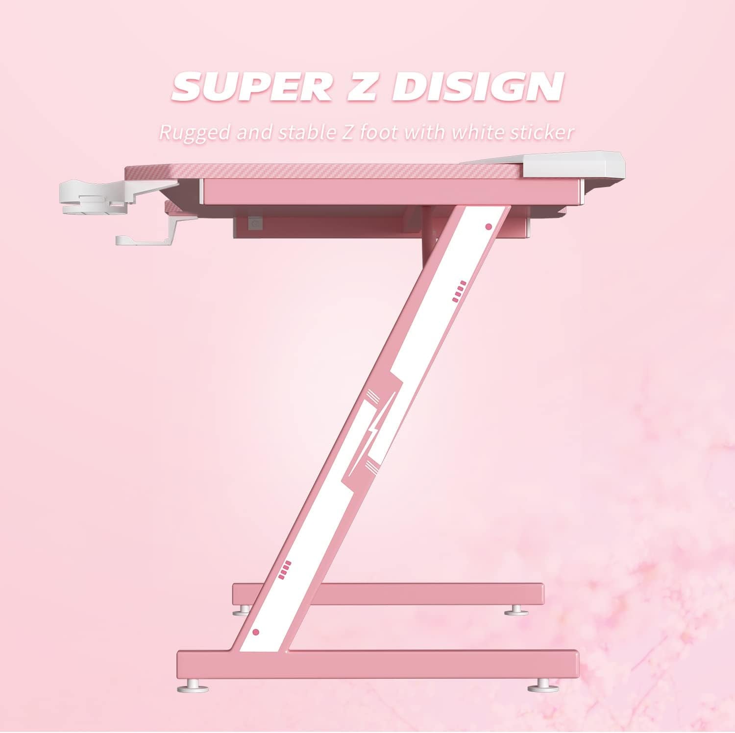 Gaming Computer Desk with Carbon Fiber Surface, Gaming Table Z Shaped