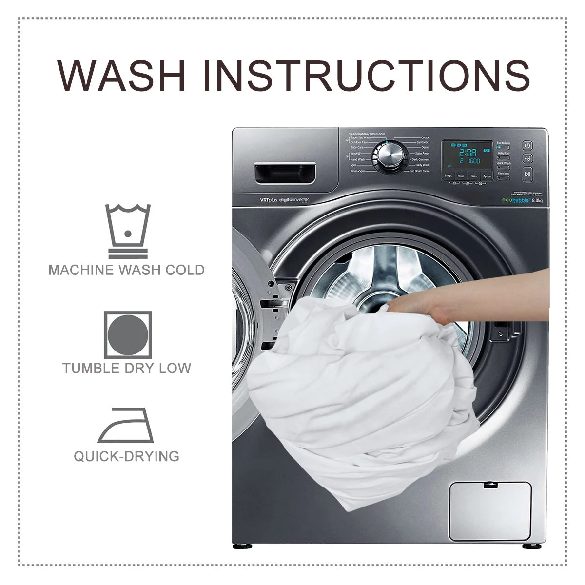 Note:Machine Wash In Cold Water. Tumble Dry on Low. Do not Bleach.