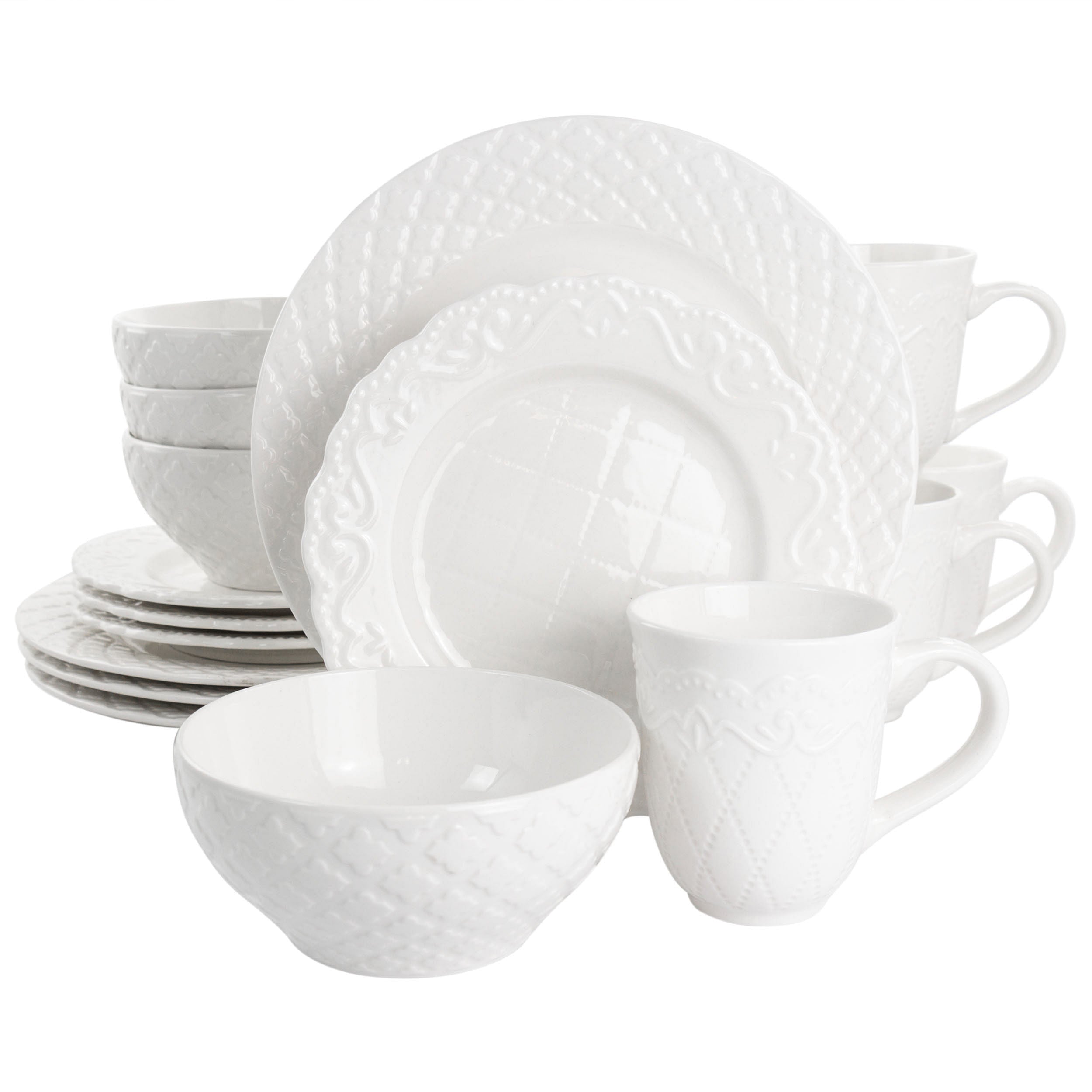 Gibson Home Quilted Eyelet 16 Piece Round Fine Ceramic Dinnerware Set