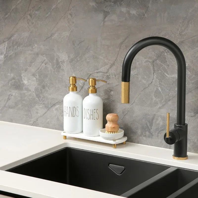 Gold Soap Dispenser Set Comes with Stainless Steel Pumps Instant Dry Tray and Dish Scrub Brush Suitable for Kitchen Decor