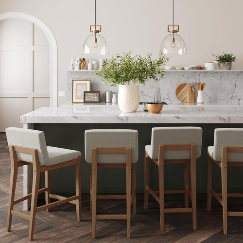 Whether you're entertaining guests or enjoying a quiet evening at home, the Stylish Modern Counter Height Bar Stool Set of 4 offers both functionality and style. The built-in footrest and classy exposed wood backing enhance comfort and elegance, making them perfect for your kitchen island or bar area.