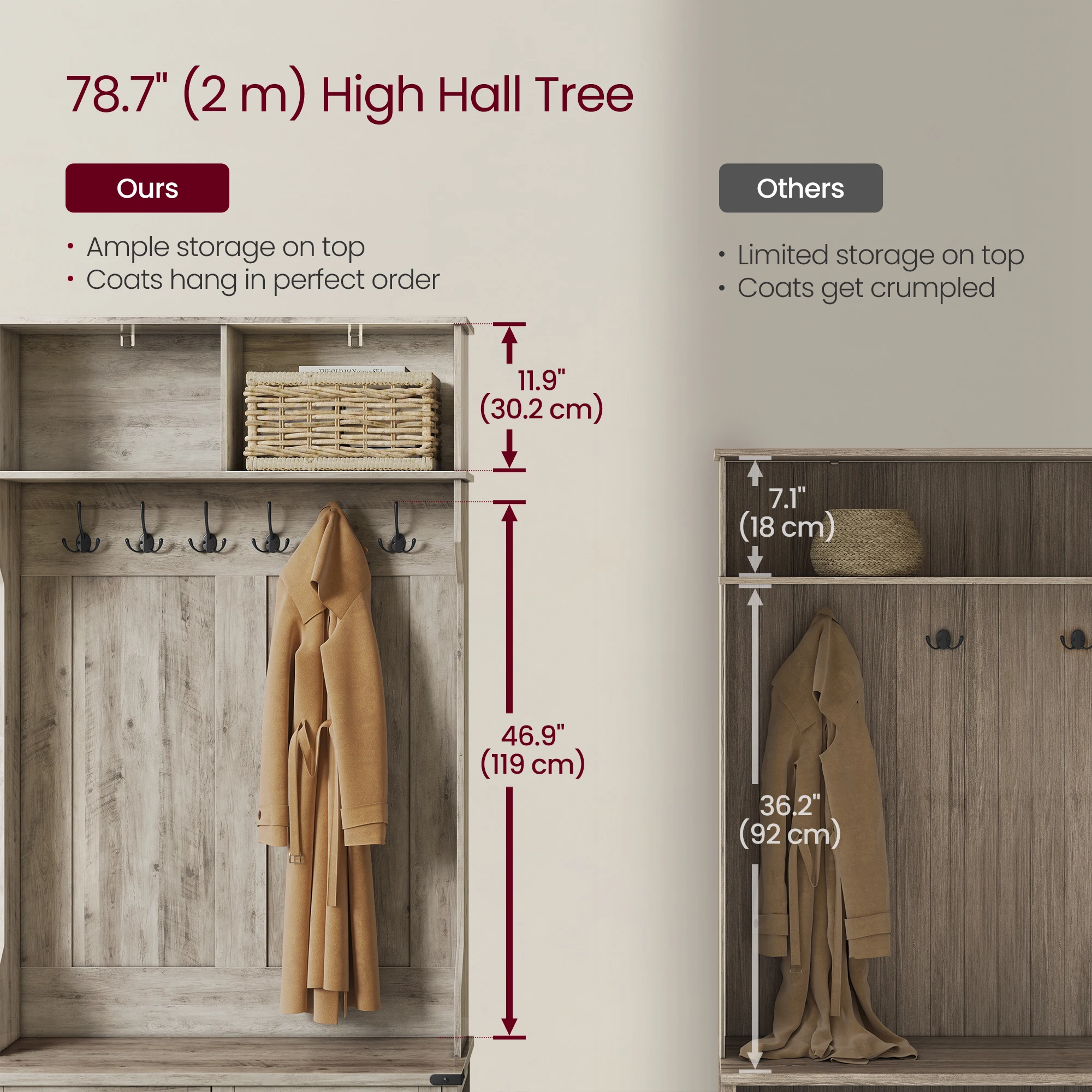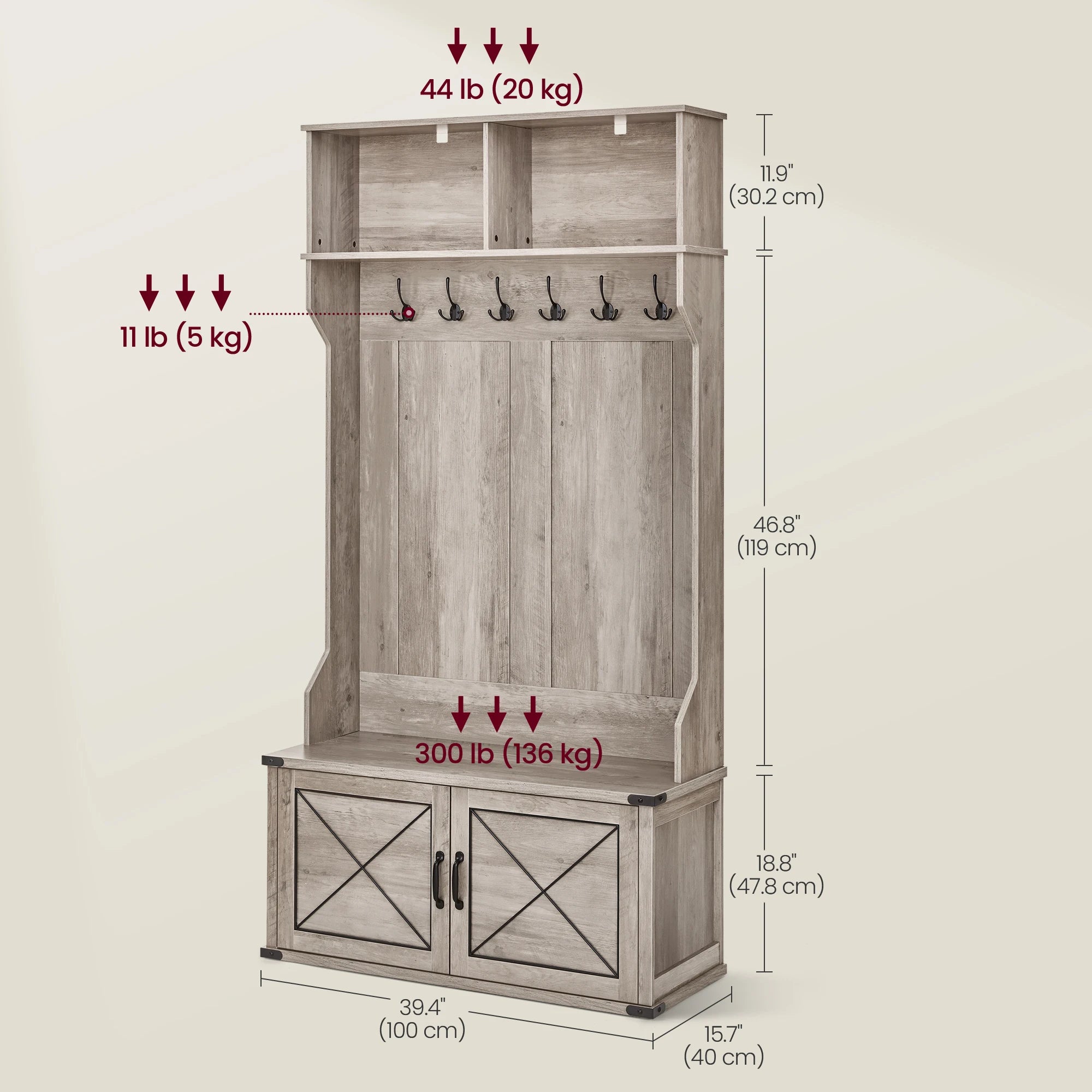 [Versatile Design] 6 tri-hooks, a shoe bench, and 4 compartments help you stay organized