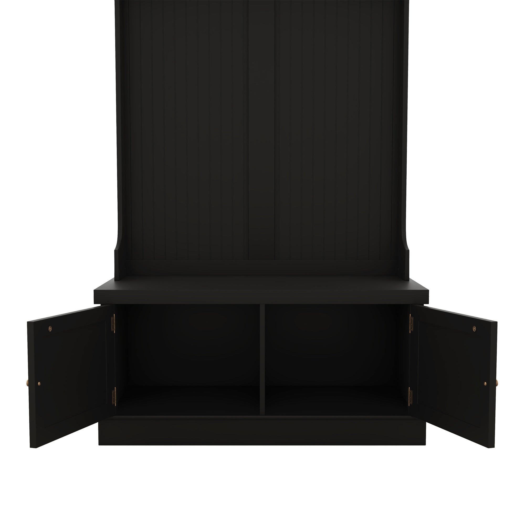 4-in-1 Design- This multifunctional hall tree is an Integrated coat rack with hooks, a shoe bench, a storage cabinet, and a display shelf, designed to fit for your entryway, laundry room, closet, bedroom, or mudroom use.