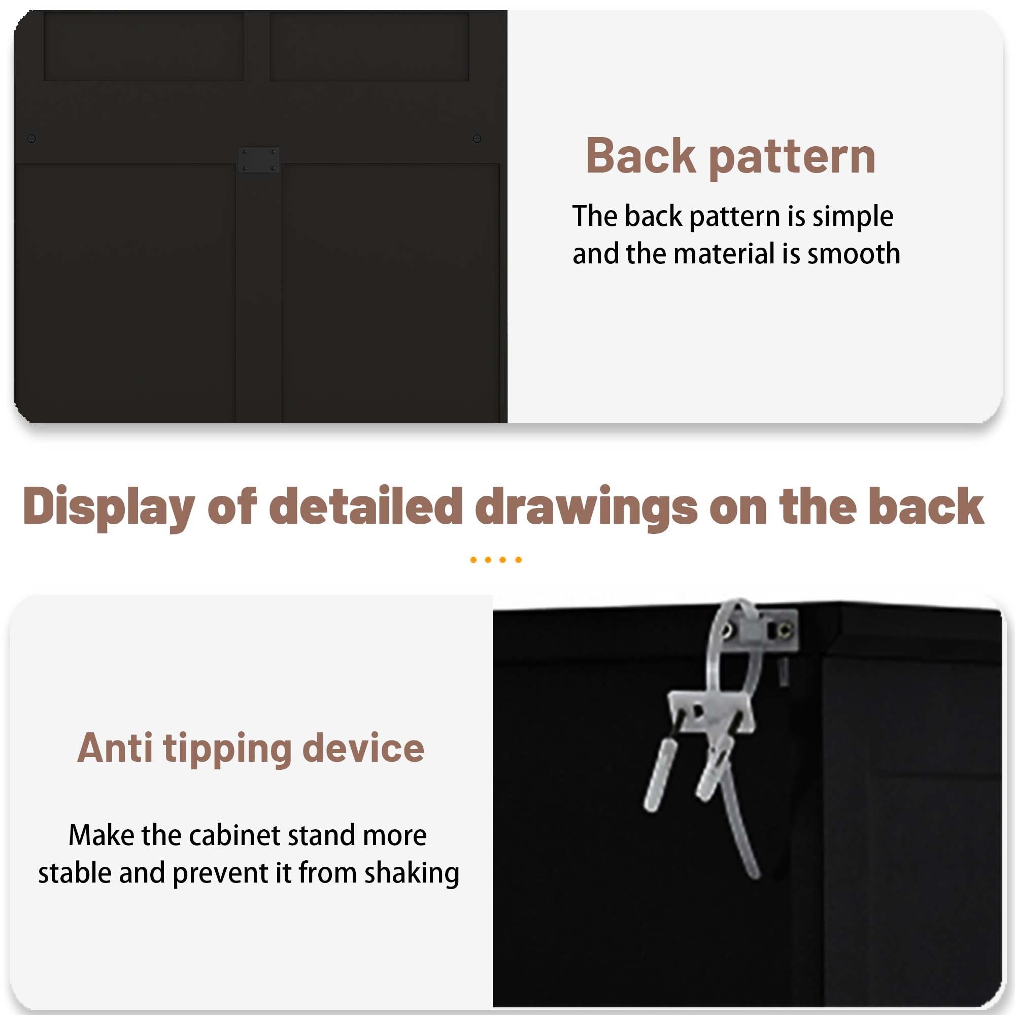 Ample Storage Space -Metal Double hooks are designed to hang your coat, hat, scarves, keys, bags, and so on. Two upper display shelves keep clutter at bay and lower storage cabinets can help store your shoes.