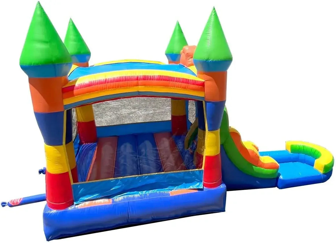 Inflatable Bounce House with Slide for Kids 26.5 X 12 X 14.5 Foot Backyard Rainbow Castle Smiley Face Combo Bouncer