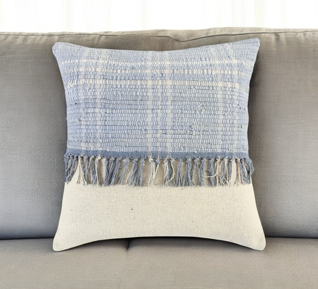 Keywords | blue block tasseled throw pillow, ivory blue block tasseled, ivory blue block tasseled throw, tasseled throw pillow, ivory blue block |