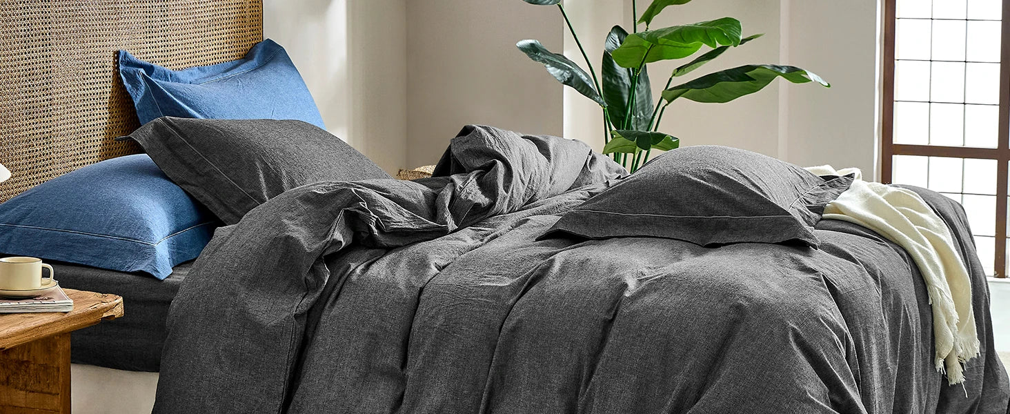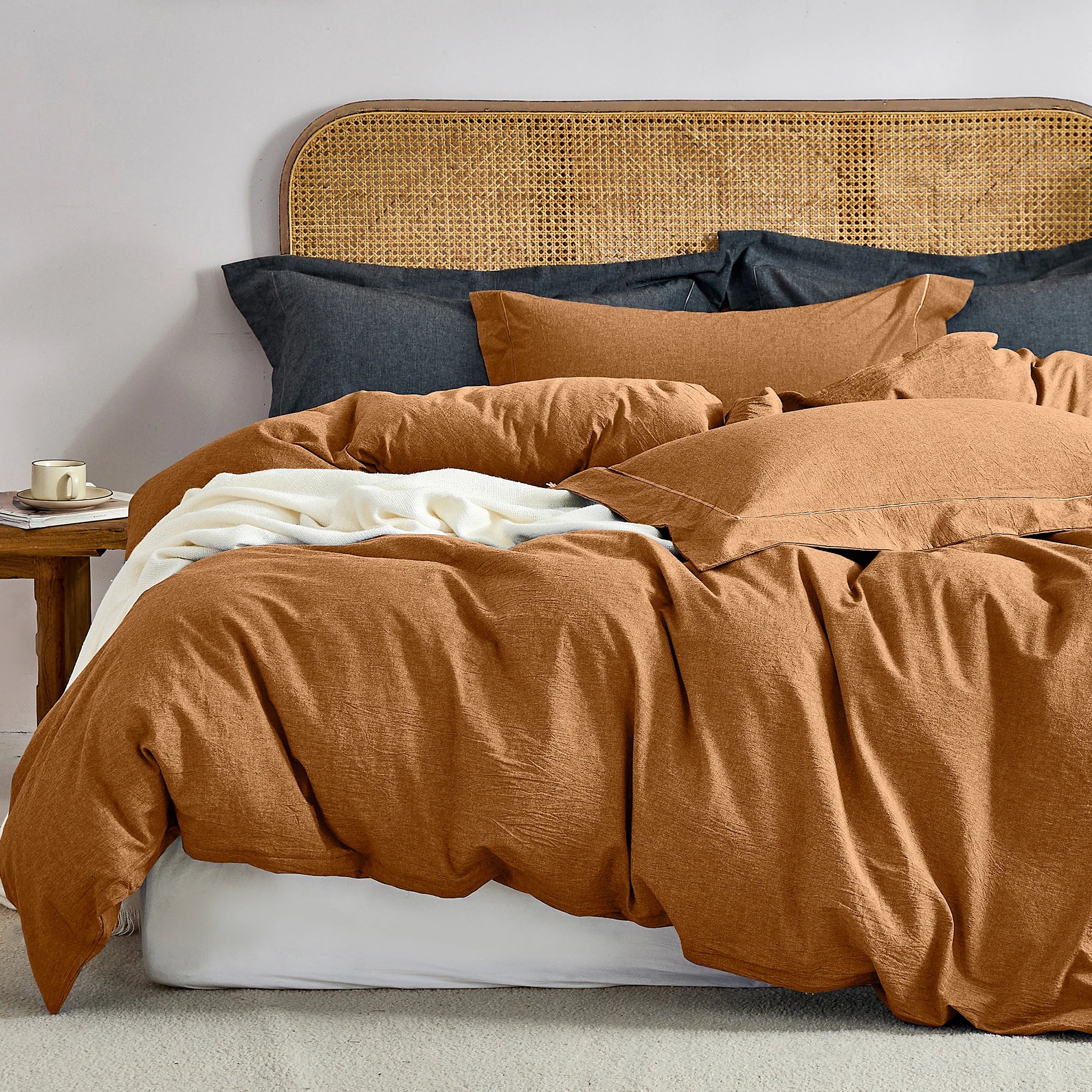 Experience the ultimate in comfort with our linen feel cotton bedding. Enjoy the softness and breathability of natural fibers for a truly restful night's sleep.