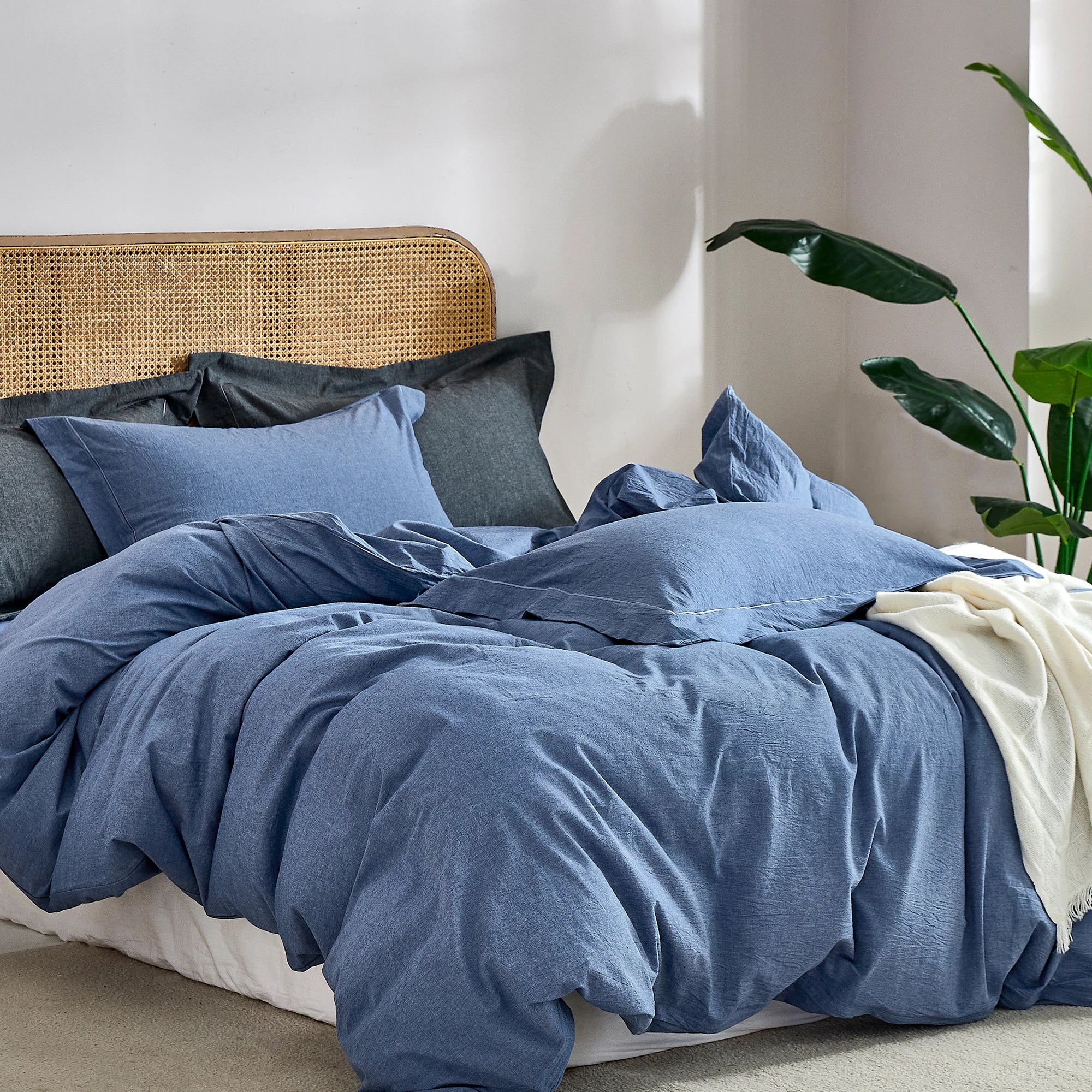 Combining the look of linen with the feel of cotton, this bedding set features a lived-in, slightly wrinkled look.