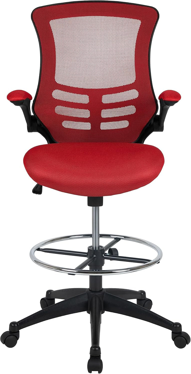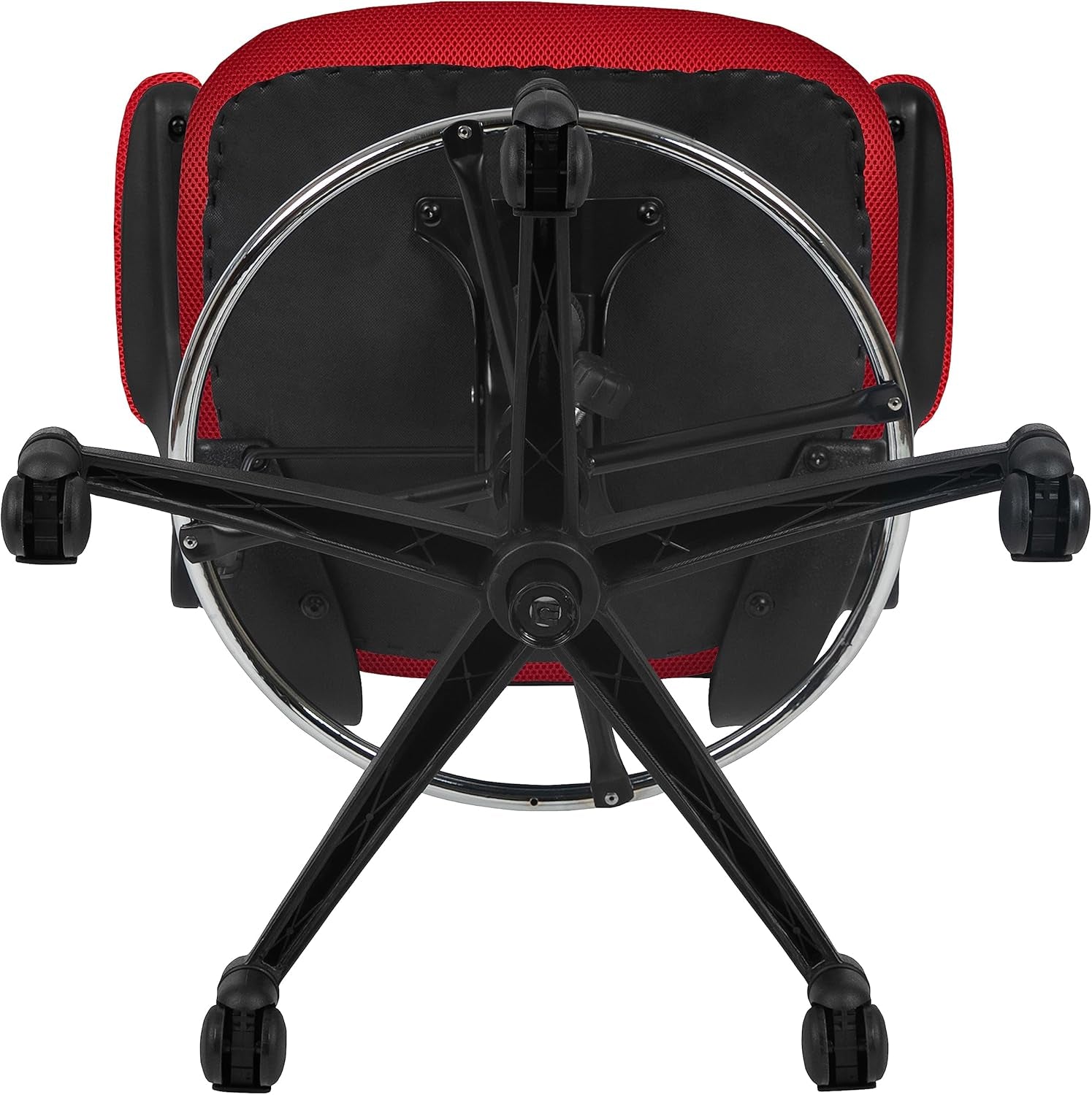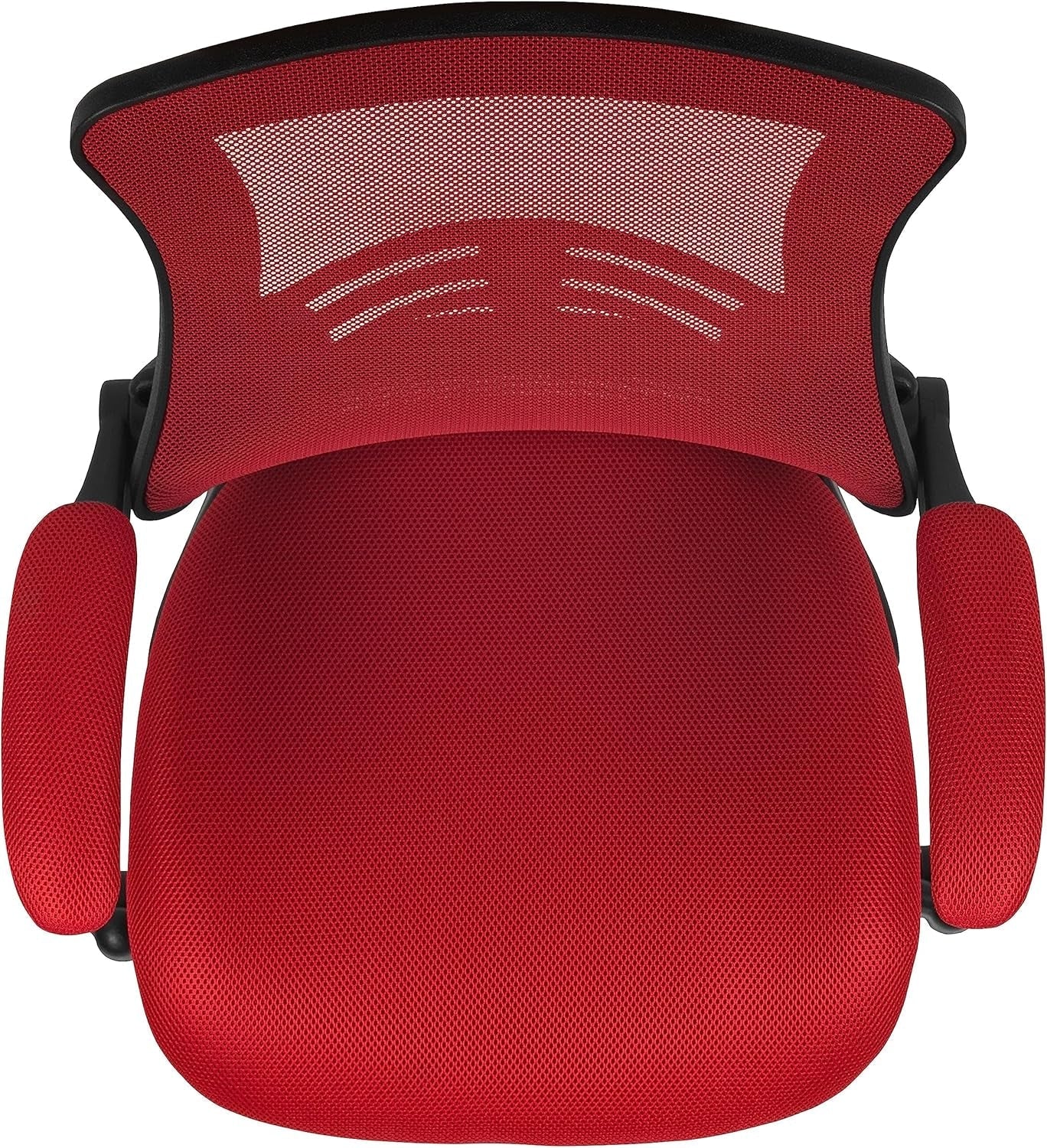 Amplify any office or workspace with the comfort and simplistic style of the Flash Furniture Kelista Mid-Back Swivel Office Chair. This ergonomic mid-back swivel office chair provides exceptional seating for everyone from the CEO to the front office staff, ensuring the perfect balance of ergonomic comfort and optimal support for each employee. This versatile commercial grade office chair has a sleek and versatile design that makes it perfect for use in front offices, executive suites, at-home work desks, college dorm rooms, student study spaces, or just about anywhere. Packed with ergonomic features, the ventilated curved mesh back with integrated lumbar support prevents overheating and promotes better posture, while the padded waterfall seat helps relieve pressure from the legs so you can take on even the longest work days without discomfort. Additionally, the highly customizable office chair features a height-adjustable foot ring to offer personalized comfort for different tasks and desk heights and a pneumatic height adjustable seat that swivels 360 degrees and has a tilt lock with tilt tension. The functional flip-up arms provide added convenience and ease of access. Lean back while as you enjoy your lunch break or take a quick phone call, or lock in an upright position once it's time to focus. This mid-back office chair measures 24.5" W x 25.5" D x 37.5-41.25" H and can be assembled quickly with the included tools and step-by-step instructions. As needed, the low-maintenance swivel mesh office chairs can be wiped down with a damp cloth for quick and easy cleaning.