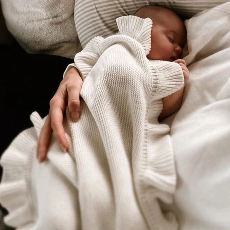 Knitted Baby Swaddle Blanket for New Born Babies Accessories Ruffle Stroller Blanket Bedding items Infant Nap Bed Cover
