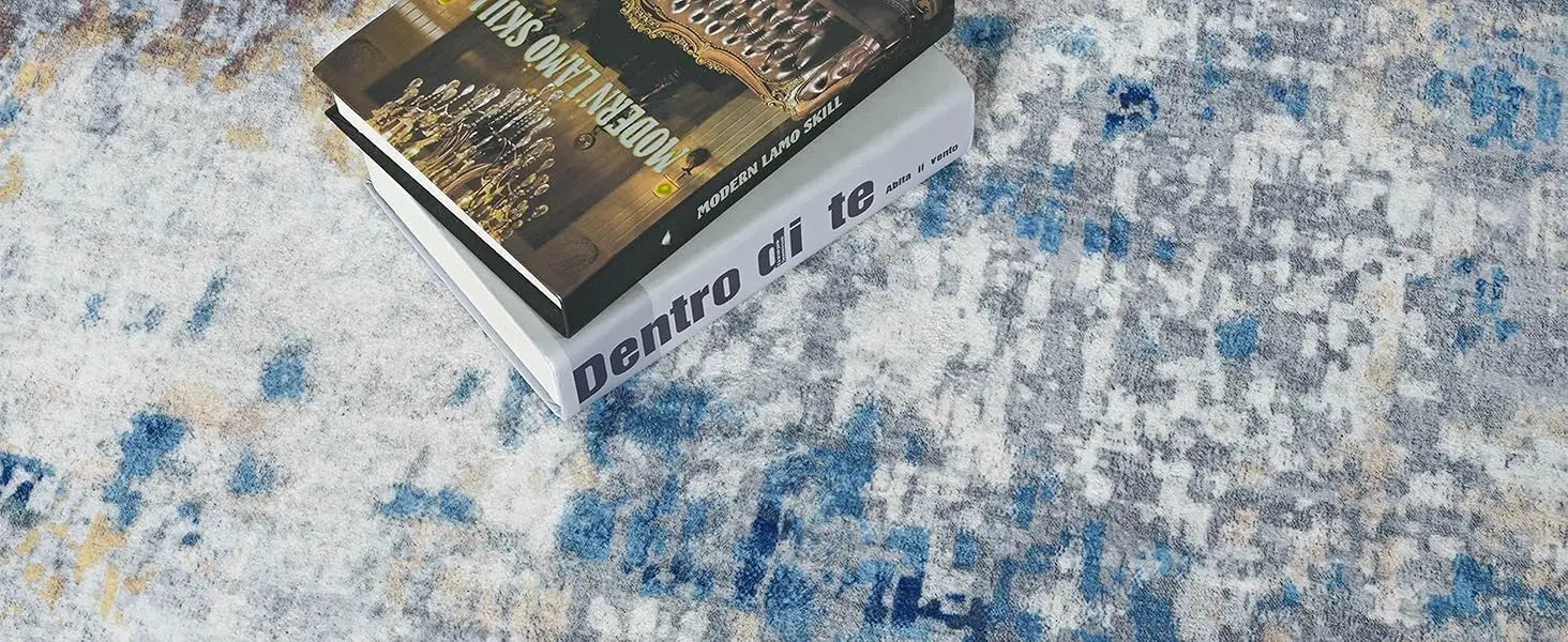 Upgraded Fabric: The skin-friendly fabric of faux wool makes your skin feel comfortable and your child's tender skin won't get hurt, this 5x7 blue abstract area rug is water resistant to ensure that liquids won't penetrate the rug after splashing, including water, coffee, wine, milk, juice, pet urine, It can be machine washed, hand washed and vacuum cleaned, easy to clean
