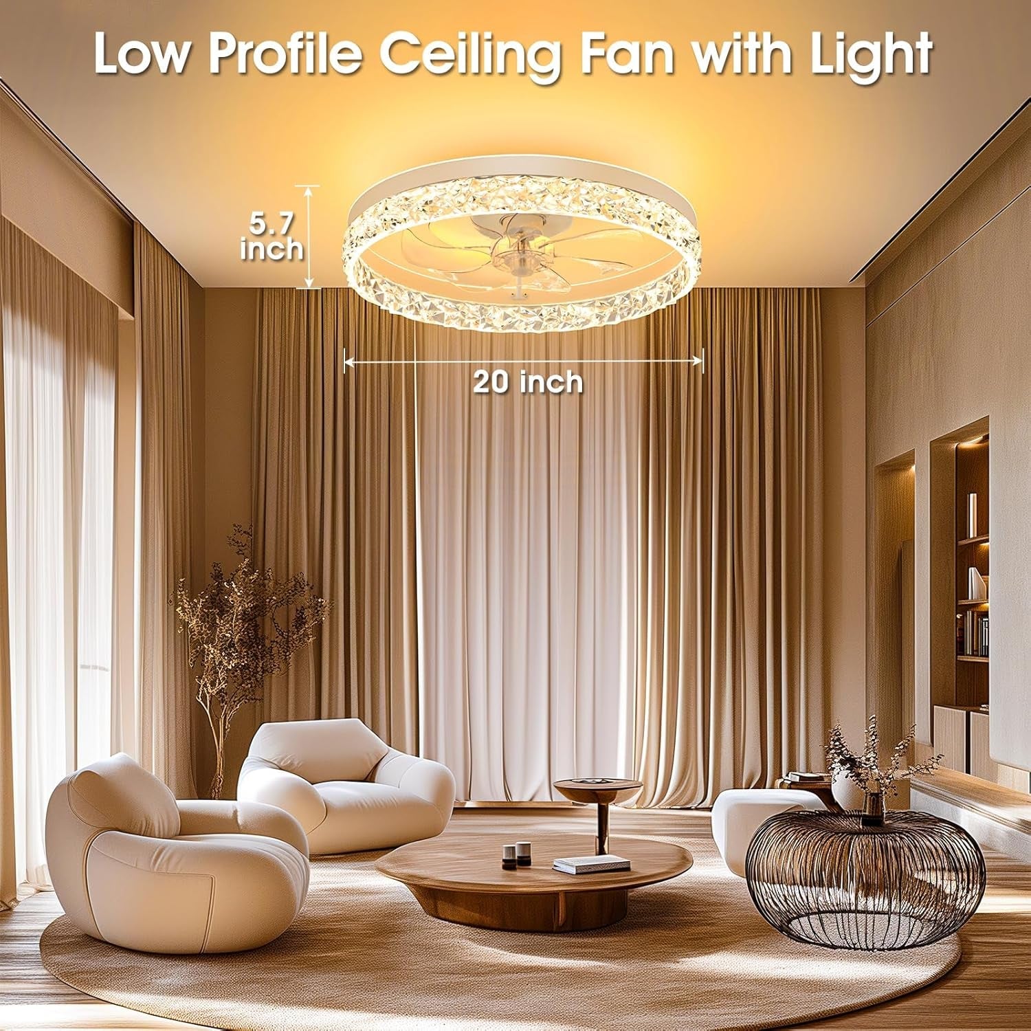 Upgrade your home with this Stylish Low Profile Ceiling Fan that not only keeps your space cool but also elevates its elegance through stunning lighting and modern technology.