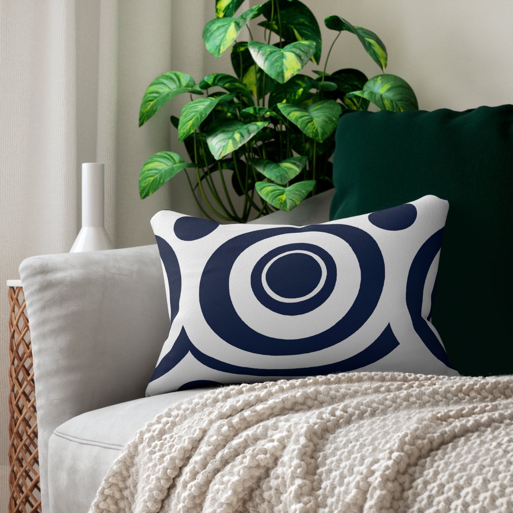 Decorative Lumbar Throw Pillow - Navy Blue and White Circular Pattern