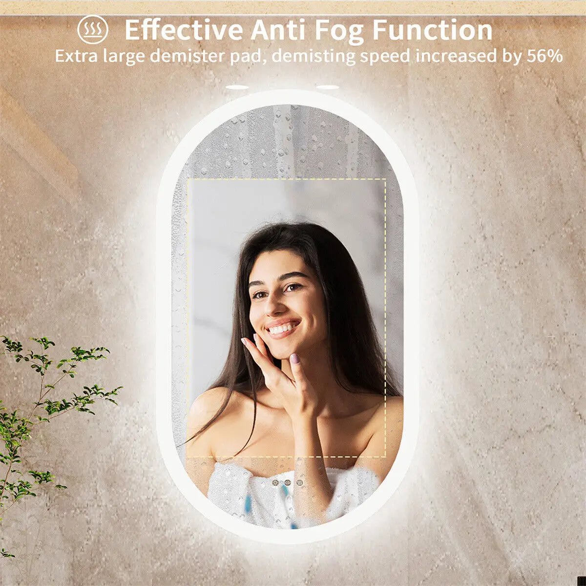 Vanity mirror equipped with backlight, single led strip on the back, 3 colors for lighting, giving off a bright, pleasant glow that creates a soothing atmosphere in any bathroom, the lights will not case shadows on your face, great for checking out your appearance, shaving or applying makeup
